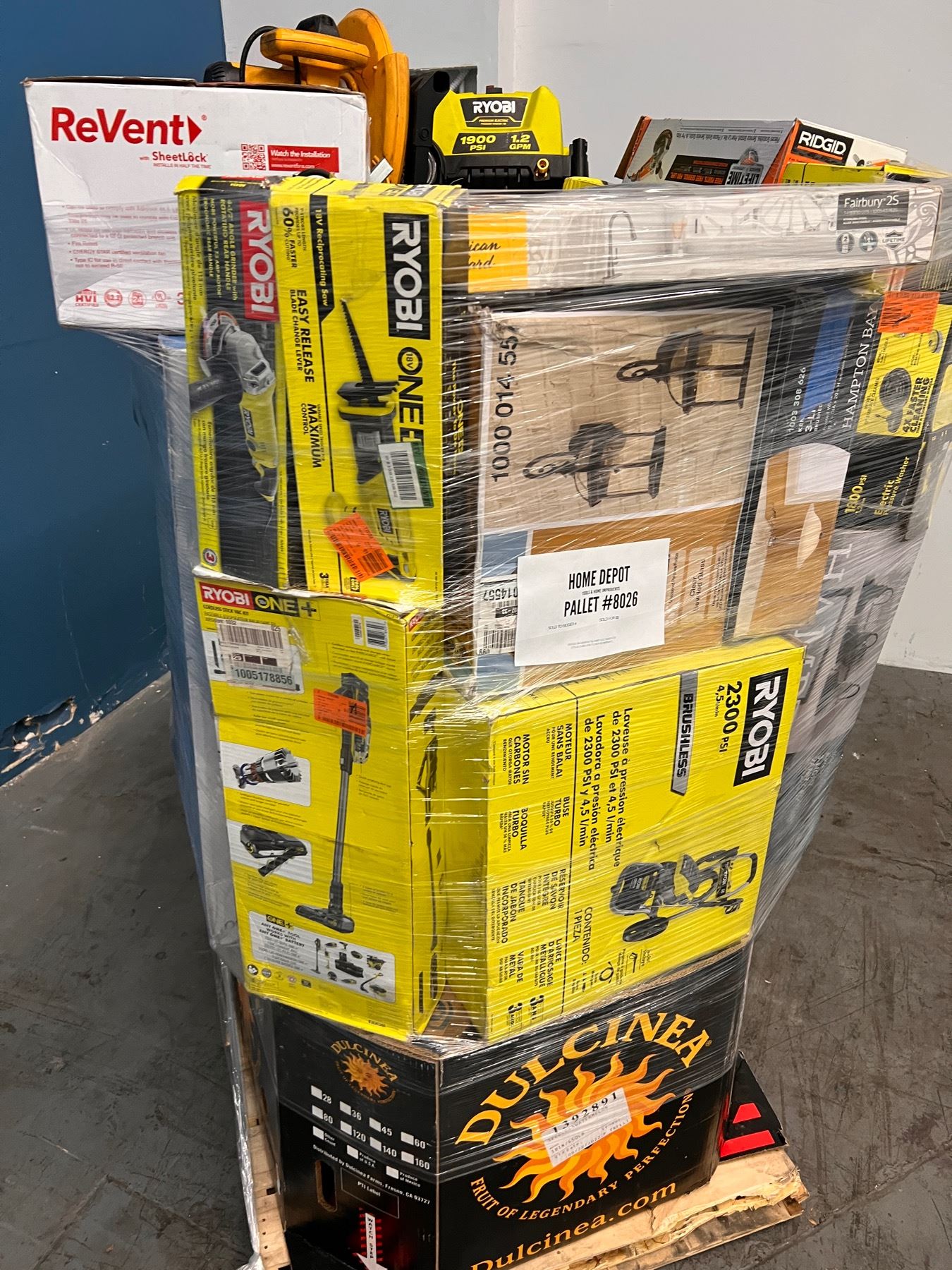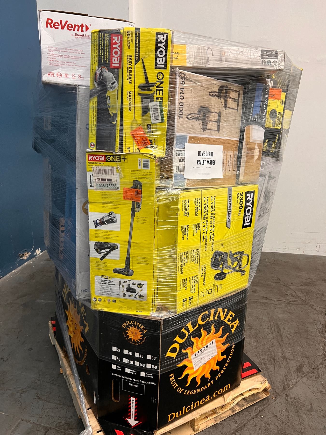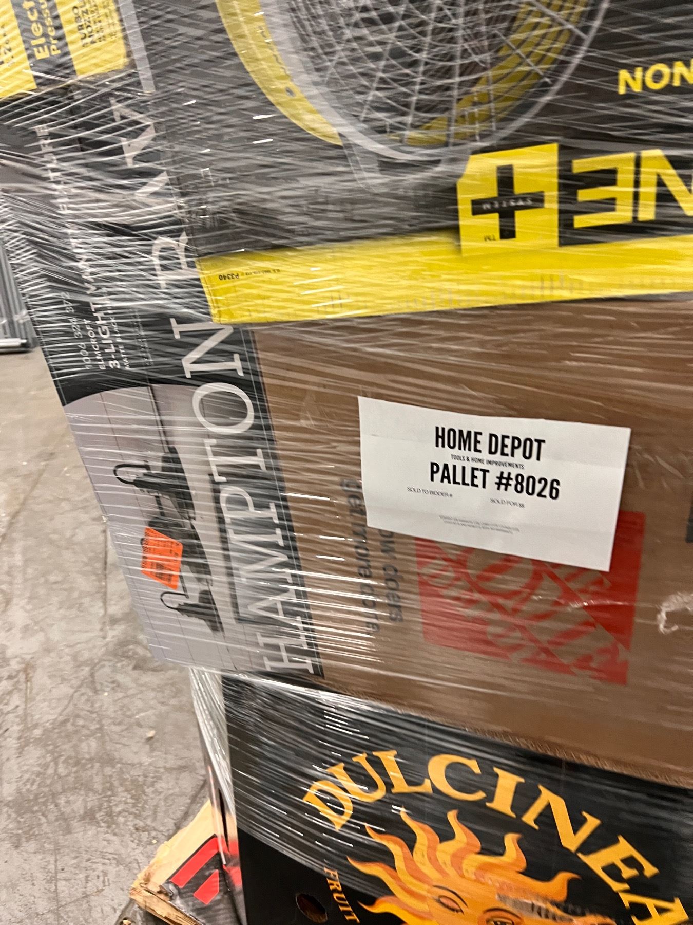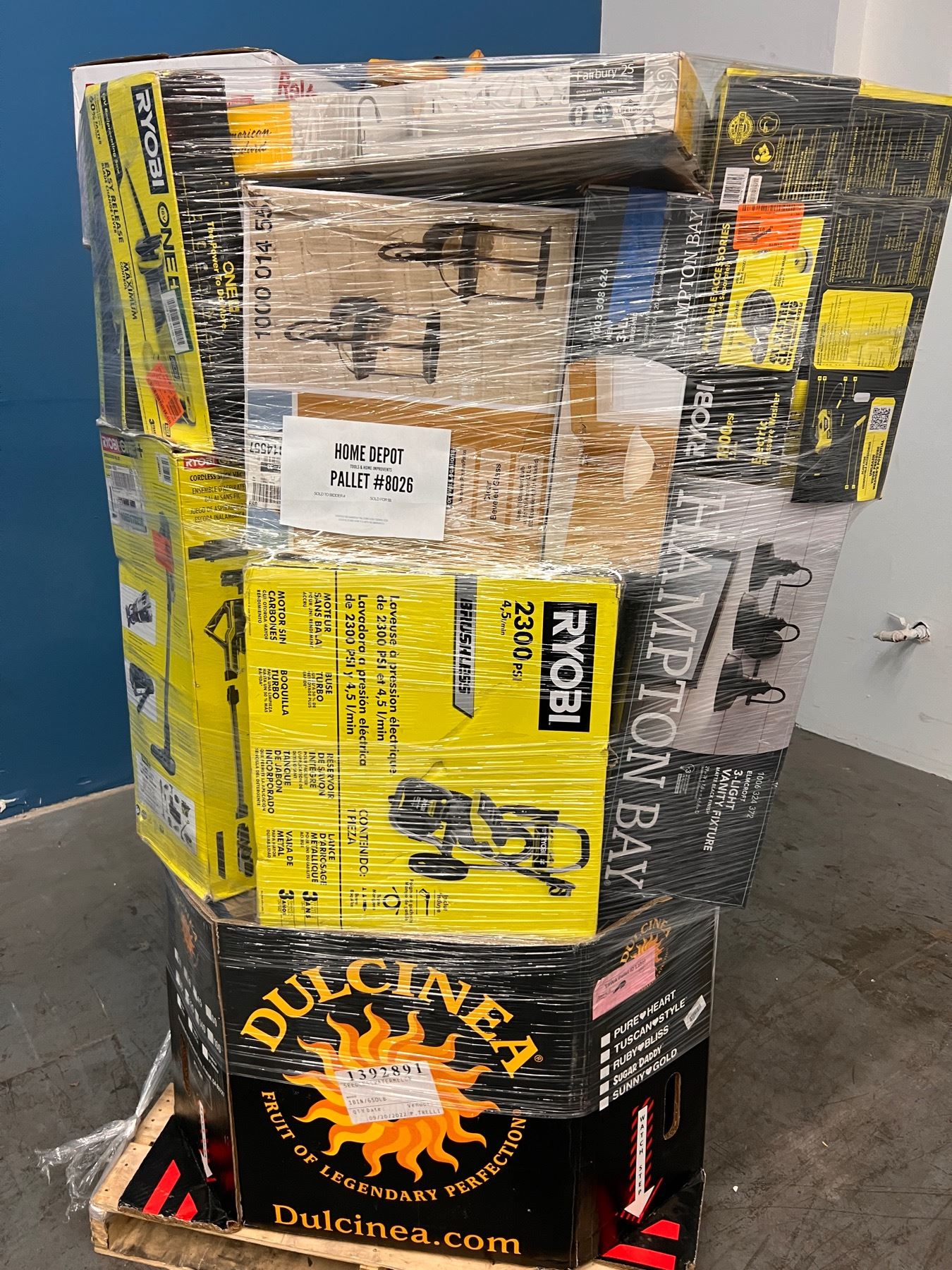 Pallet con Mercancia de Home Depot, la cual incluye Herramientas y Home Improvements. Toda la mercancia es clasificada como retornos y liquidaciones. Usted es responsable de venir por su mercancia al lugar donde la subasta se llevaba acabo o de los gastos de su traslado mediante envío el cual usted también es responsable de elegir la compañía de envíos.