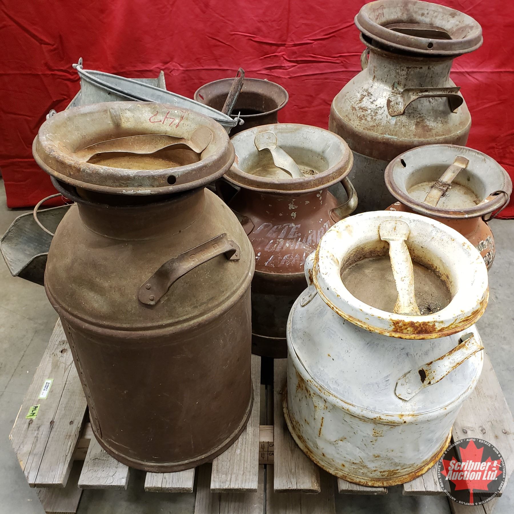 Pallet Lot: Milk/Cream Cans; Scuttles; Pail; etc (Tallest Milk Can 24"H) (SEE PICS!)
