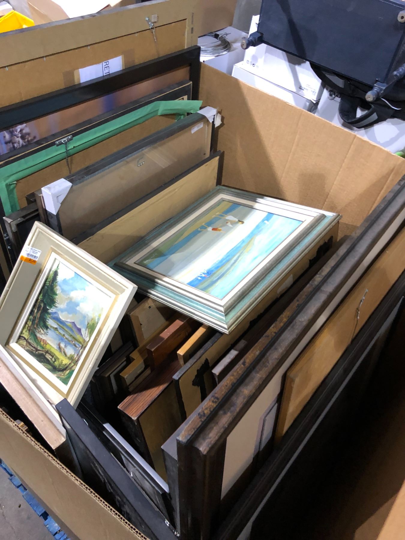 Pallet Lot of Framed Pictures approximately 40 - misc sizes 45in x 37in and smaller - some just frames from Set Décor Rentals.