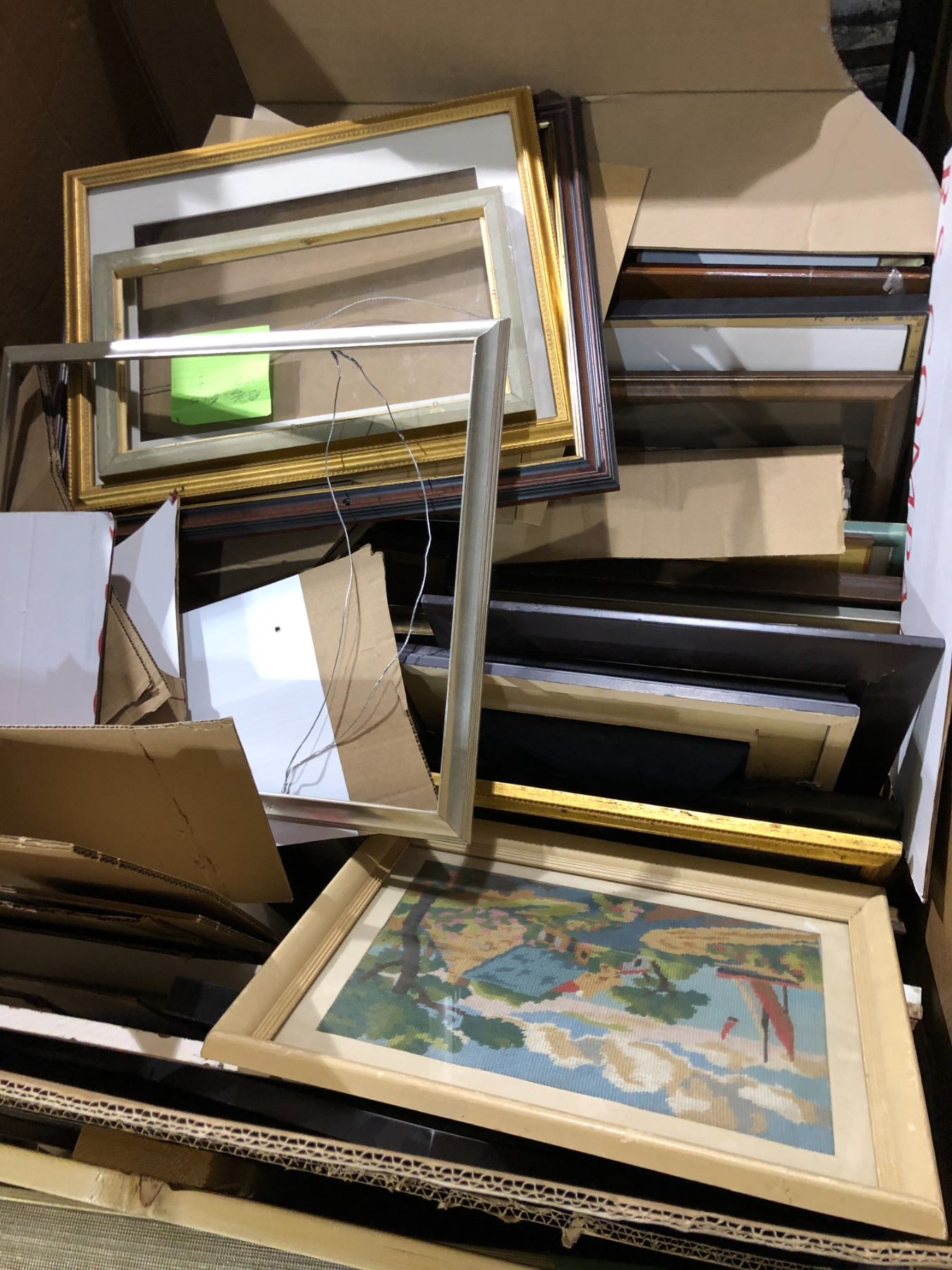 Pallet Lot of Framed Pictures approximately 50- misc sizes 35in x28in and smaller. Even needlepoint included. From Set Décor Rentals