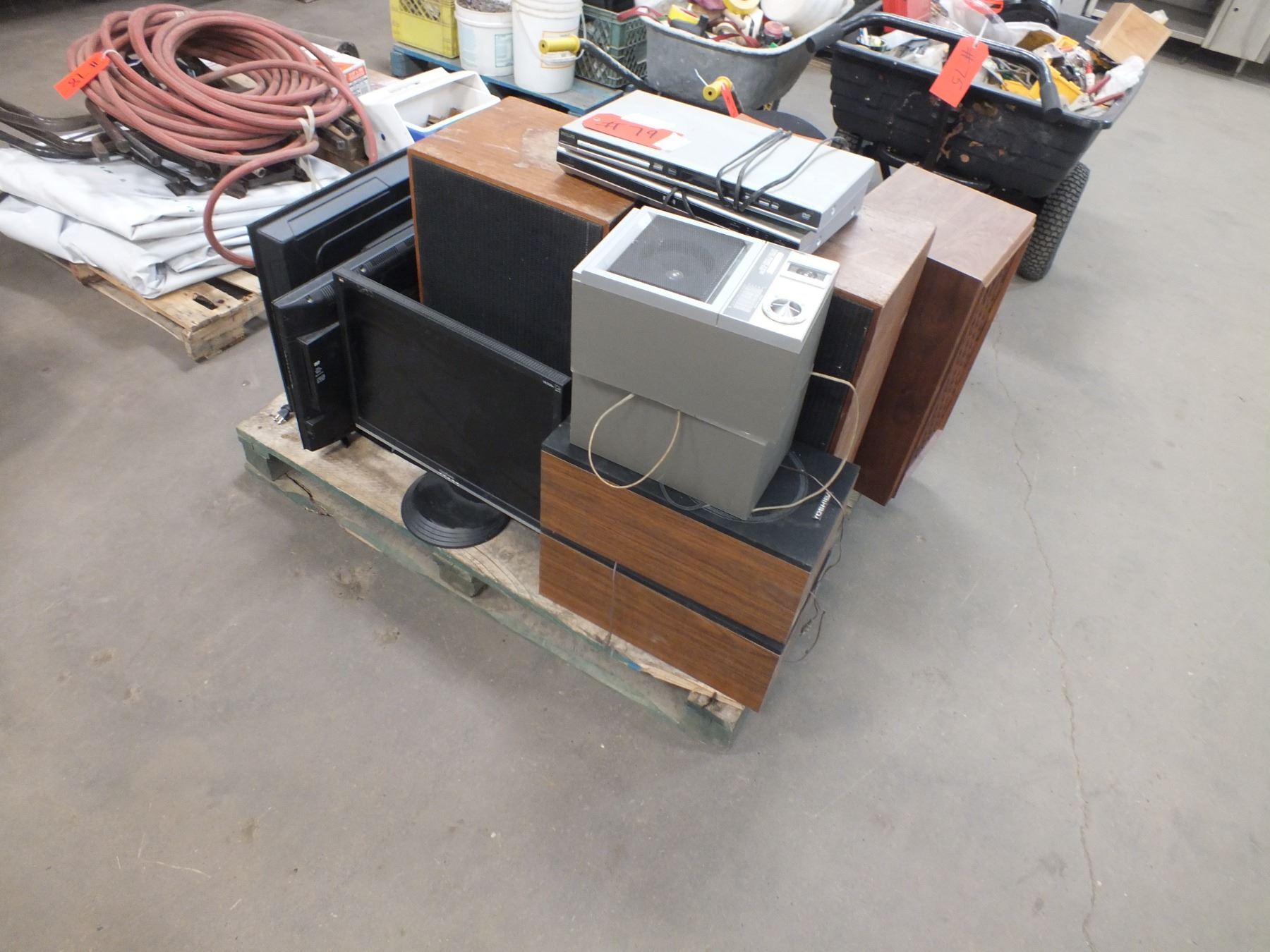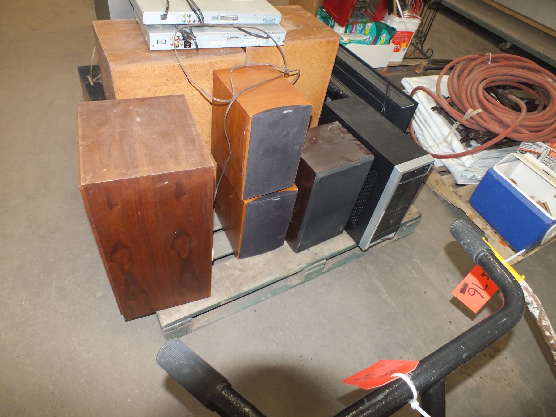 Pallet Of Assorted Speakers / 32" TV / Monitors, and a cpu, all for one money...used