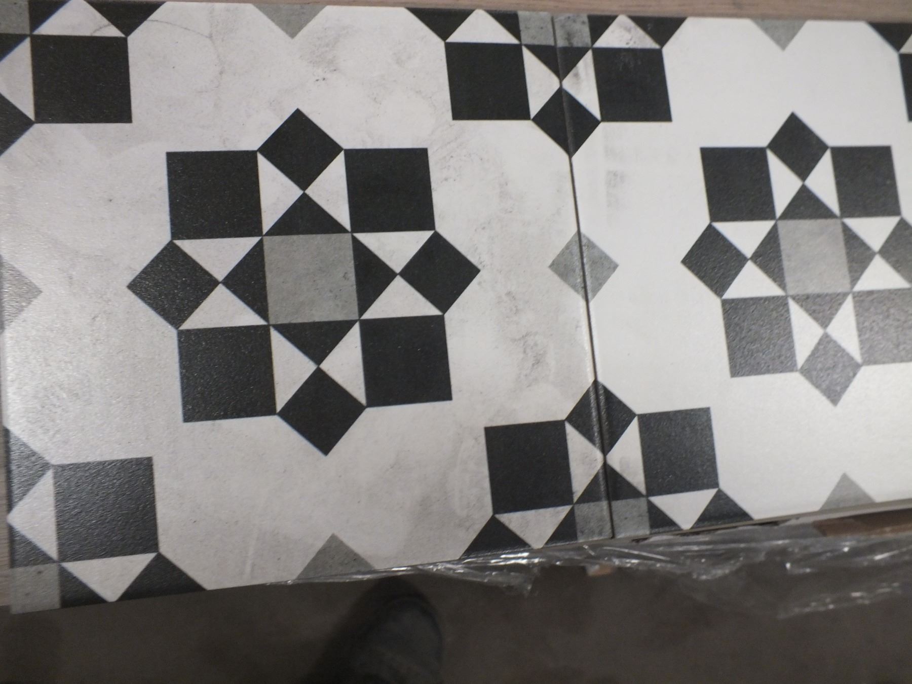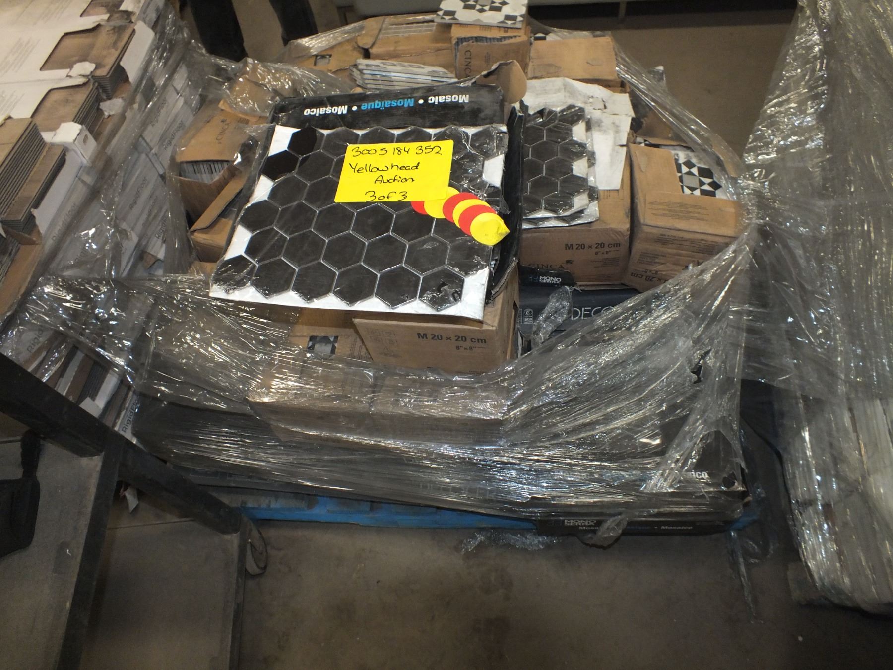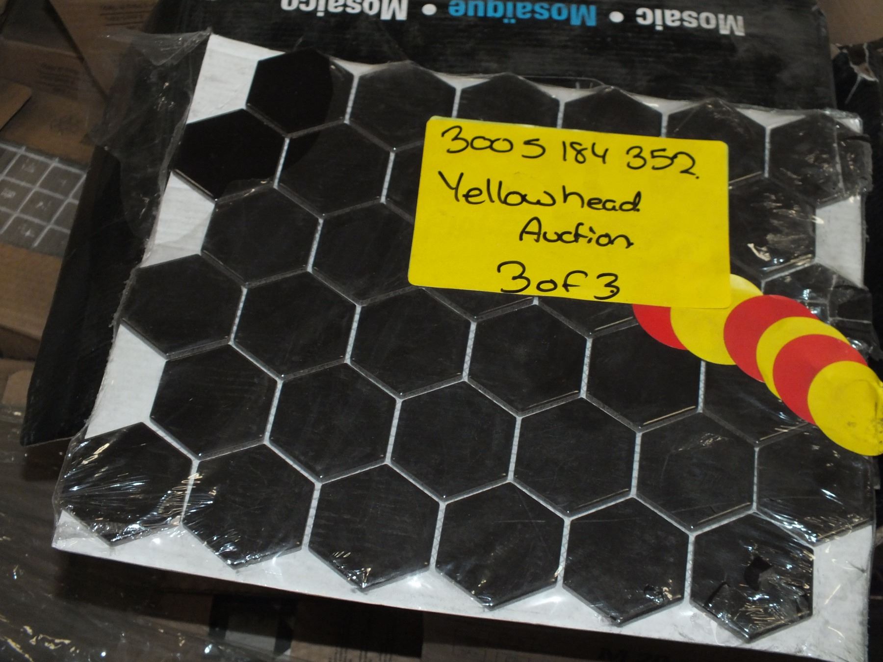 approx 30 boxes, 100sq ft of black, 250 sqft of black and white tile, some are damaged...freight claim...new