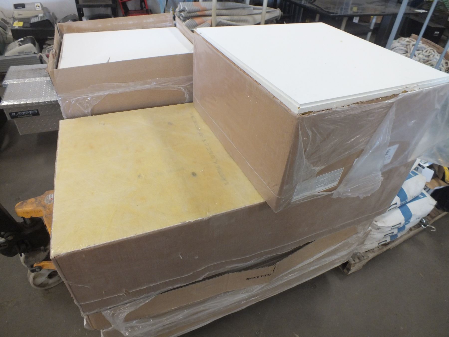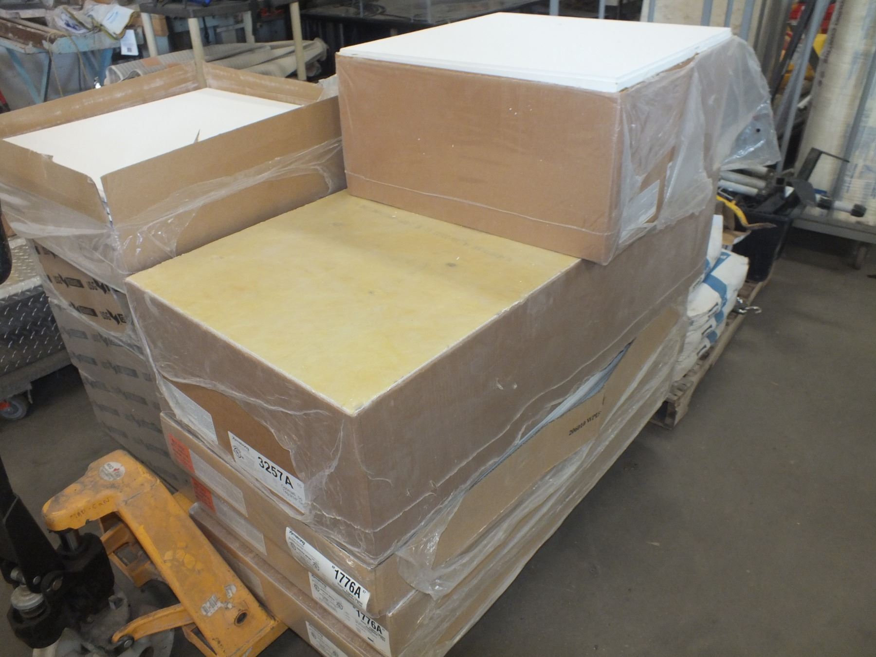 Pallet Of Ceiling Tile, you get 1 box of 24" x 24" insulated squares, 4 boxes of 24"x24" non insulated square's, 1 box of 4ft x 2ft insulated squares, and 3 boxes of 4ft x 2ft non insulated squares, comes with some T-bar...new