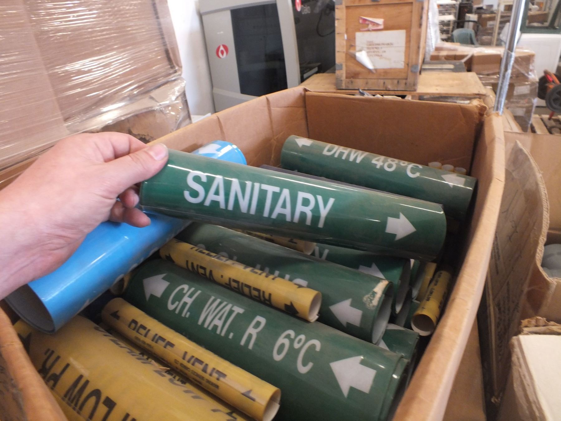 Pallet Of Industrial Labels & Assorted PVC Pipe....