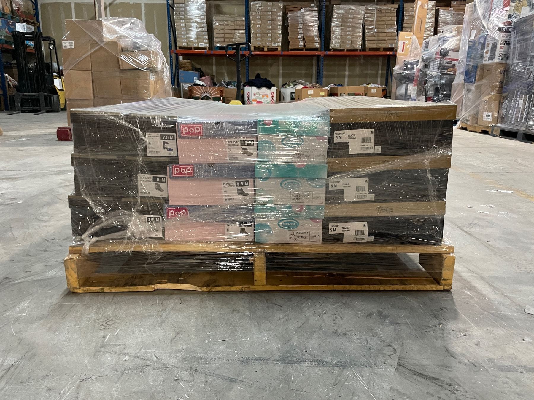 Mixed footwear pallet, different brands, sizes and models. With and without box.