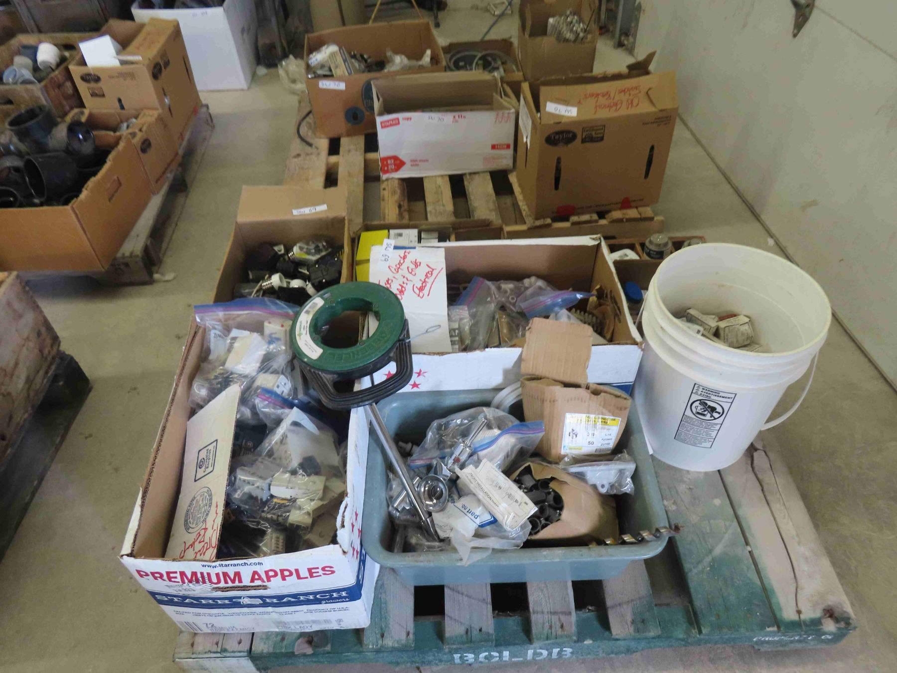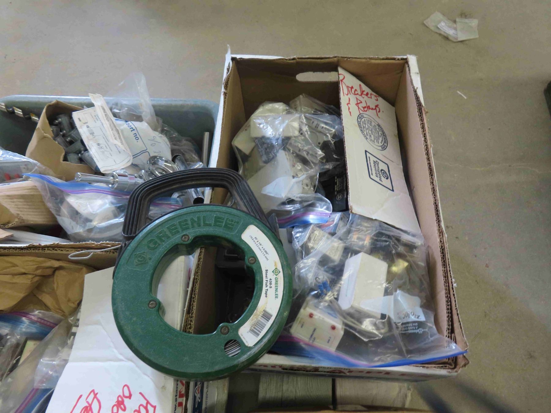 Pallet of Breakers, Connectors, Merrits, Fish Tape & More