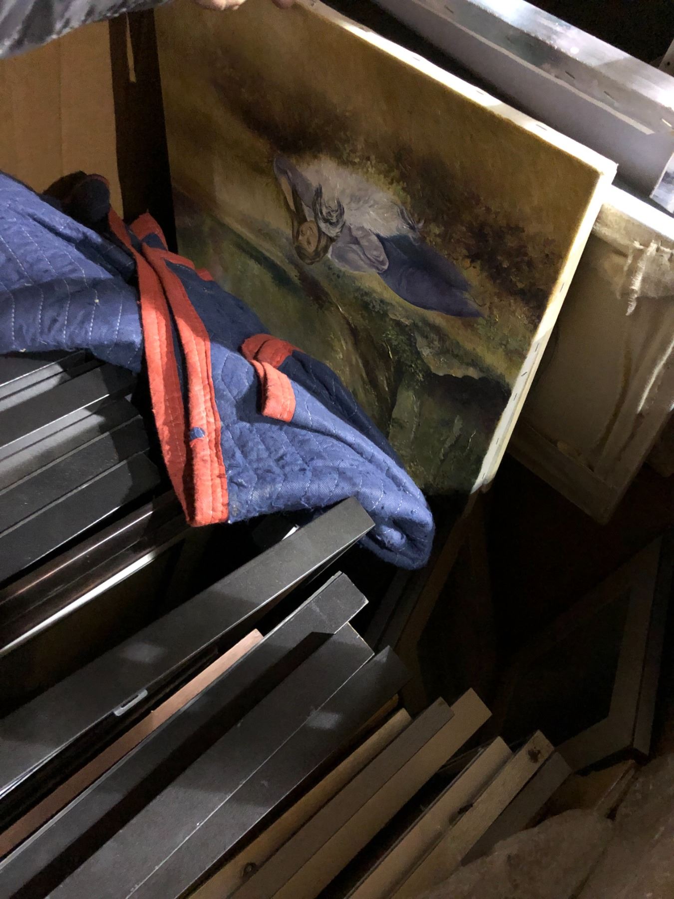 Pallet of Canvas Pictures and Frames - approx 25. Other frames approx 15, largest 36in x 24in and smaller. From Set Décor Rentals.
