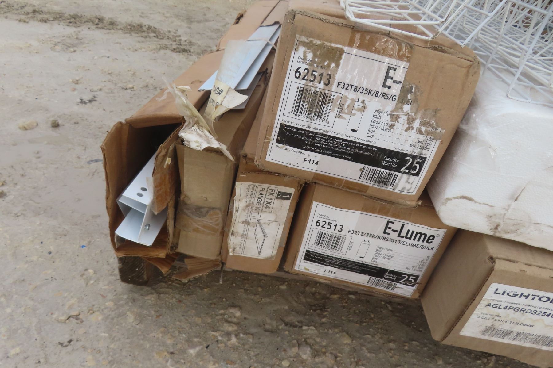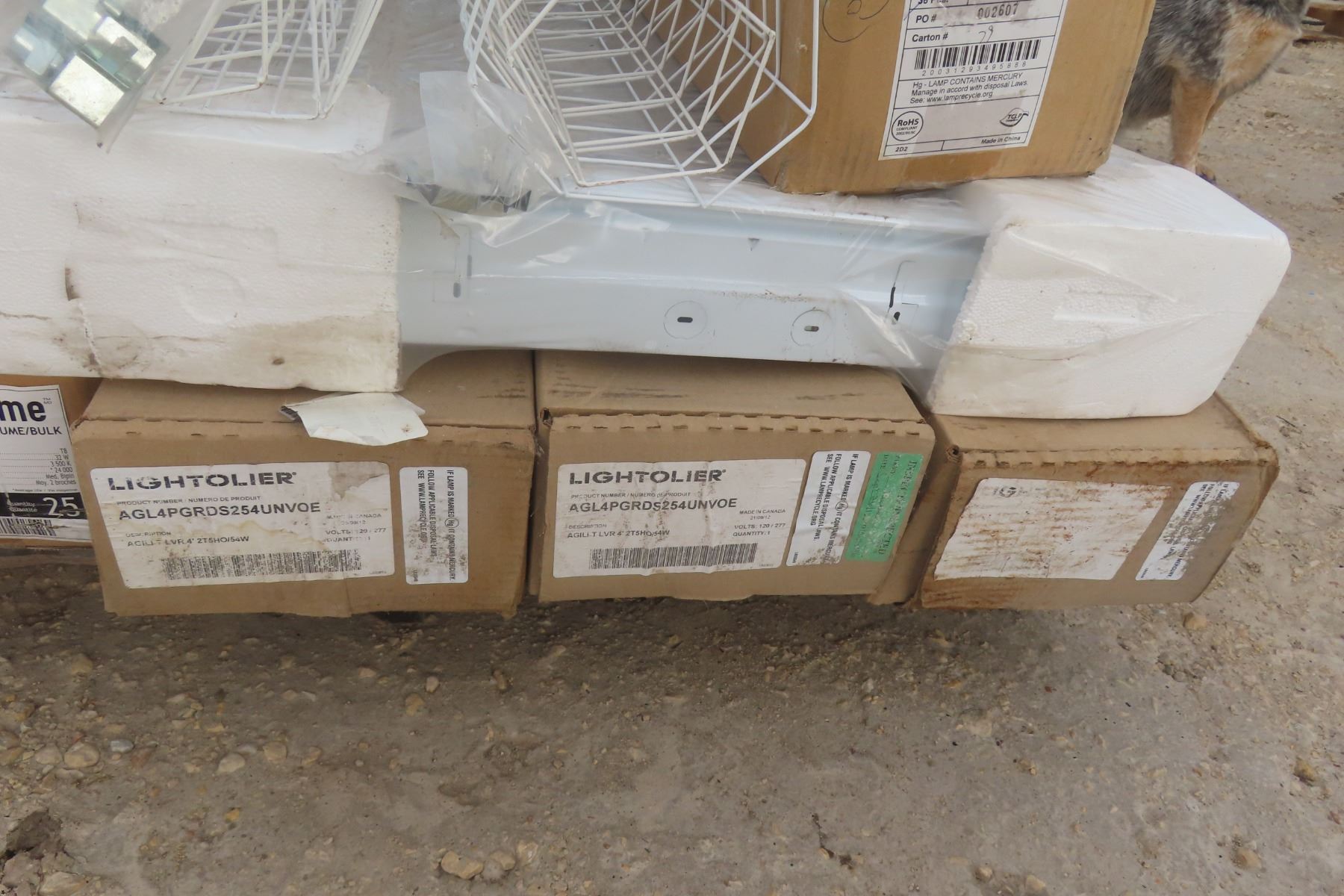 Pallet of Electrical: Fluorescent Fixtures, Cage Covers & More