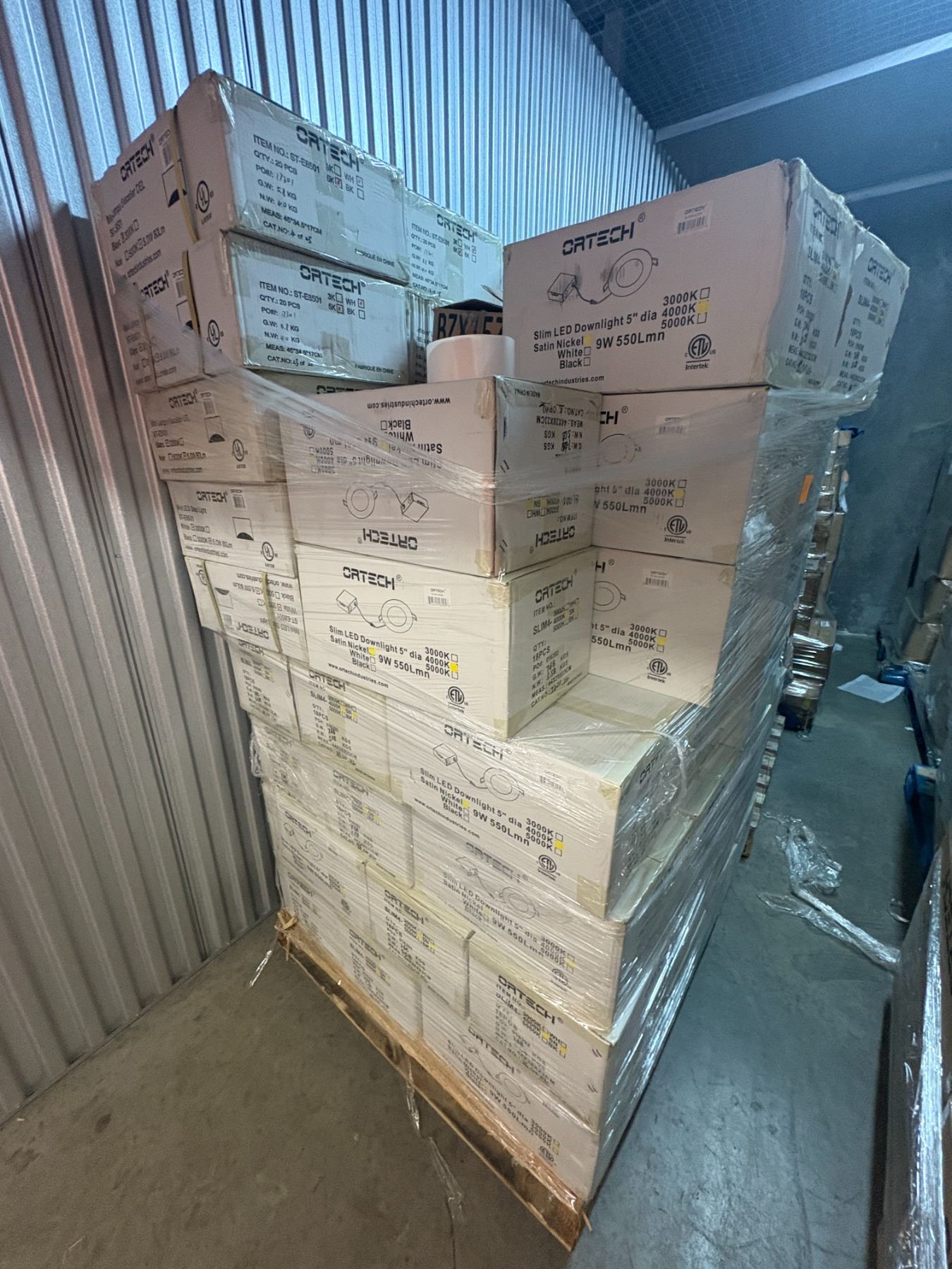 Pallet of Ortech Slim LED Downlight 5" diameter, assorted colors . PICKUP FOR THIS LOT IS AT POCKIT SELF STORAGE ABBOTSFORD, 2992 PINEGROVE ST, ABBOTSFORD, BC V4X 1T3. PICKUP VIA APPOINTMENT ONLY, LOT WINNER WILL BE CONTACTED TO BOOK AN APPOINTMENT.