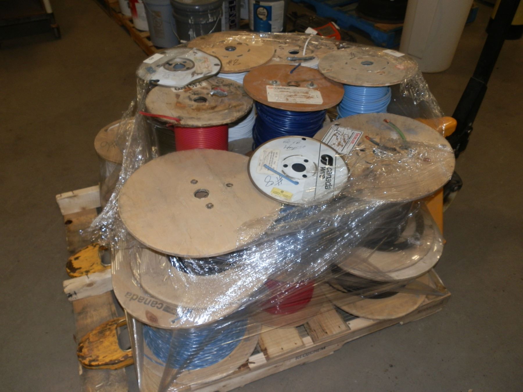 Pallet of Wire Grades of 8 and 10 reels of electrical wire,, aprox 18 reels of wire on the skid....