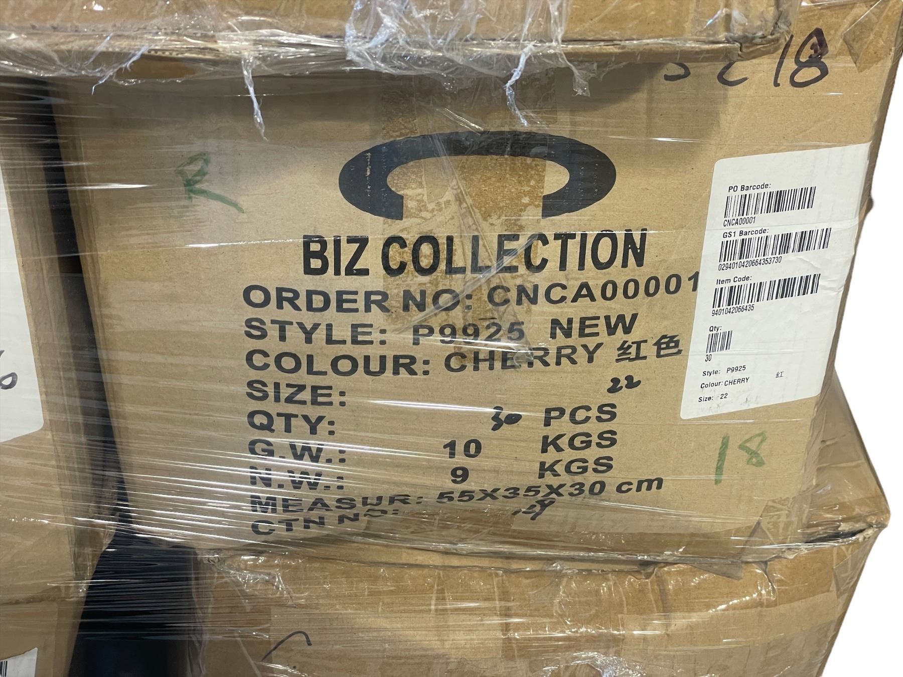 Pallet of assorted Biz Collection clothing - new in packages 1000s of pcs. PICKUP FOR THIS LOT IS AT POCKIT SELF STORAGE ABBOTSFORD, 2992 PINEGROVE ST, ABBOTSFORD, BC V4X 1T3. PICKUP VIA APPOINTMENT ONLY, LOT WINNER WILL BE CONTACTED TO BOOK AN APPOINTMENT.