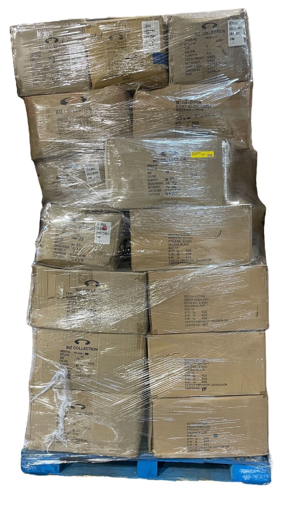 Pallet of assorted Biz Collection clothing - new in packages 1000s of pcs. PICKUP FOR THIS LOT IS AT POCKIT SELF STORAGE ABBOTSFORD, 2992 PINEGROVE ST, ABBOTSFORD, BC V4X 1T3. PICKUP VIA APPOINTMENT ONLY, LOT WINNER WILL BE CONTACTED TO BOOK AN APPOINTMENT.