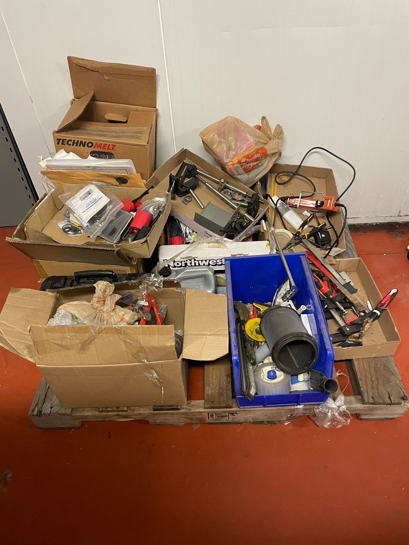 Pallet of misc. - includes Glue gun parts/Uline tapes/Glues/assorted tools etc
