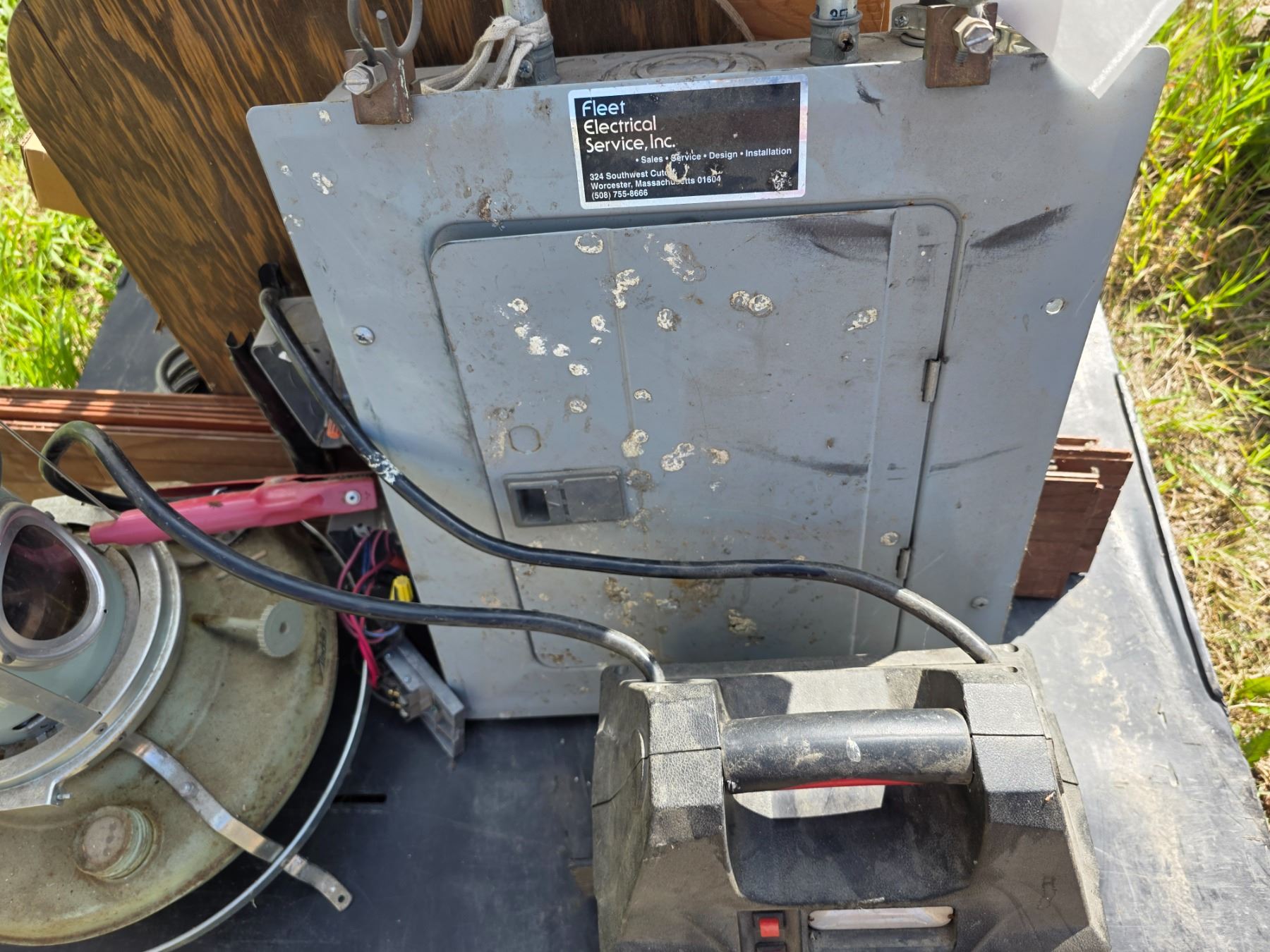 book shelf , battery charger- untested, electrical panel- untested