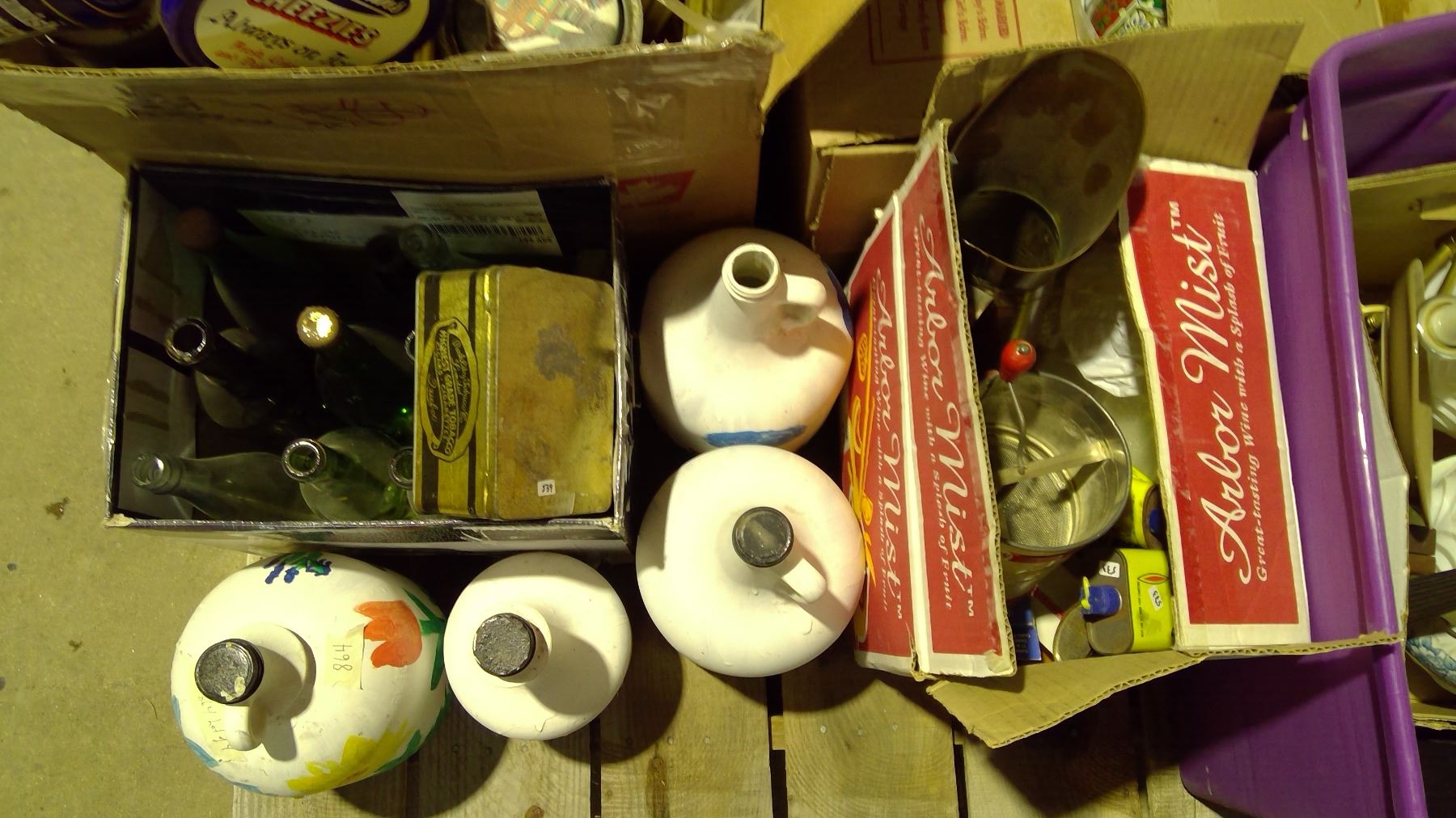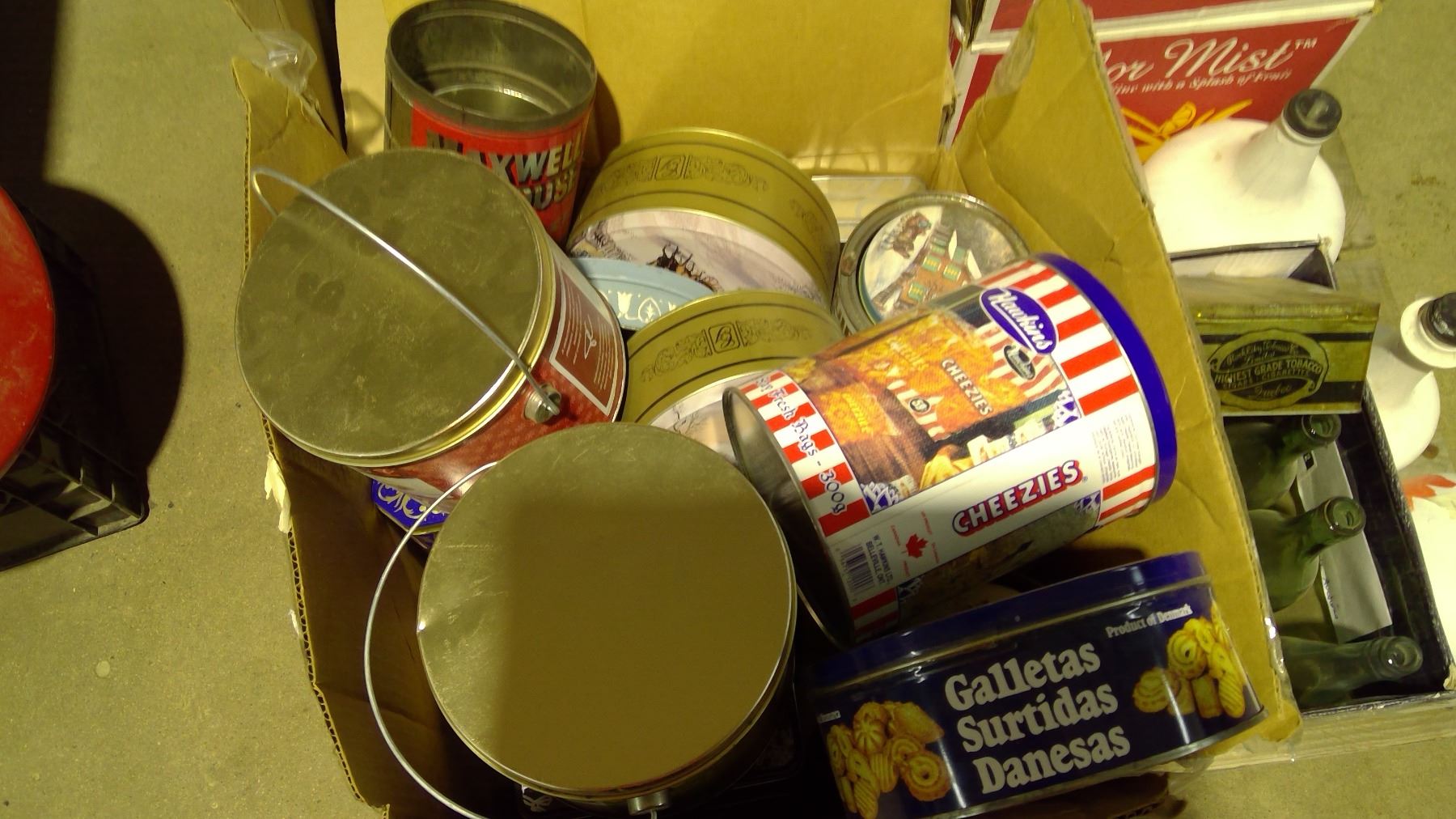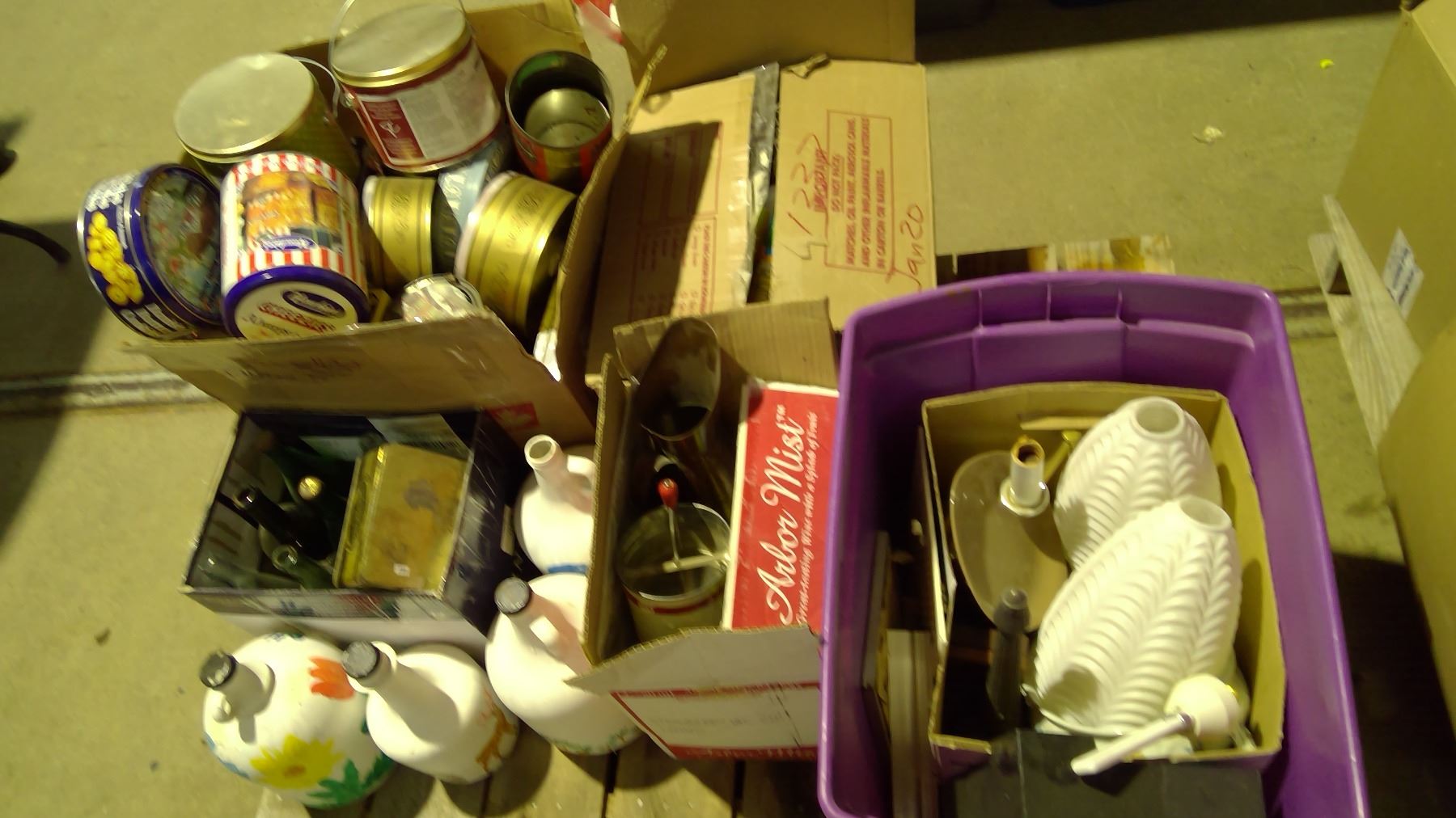 Pallet of tins, glassware and misc