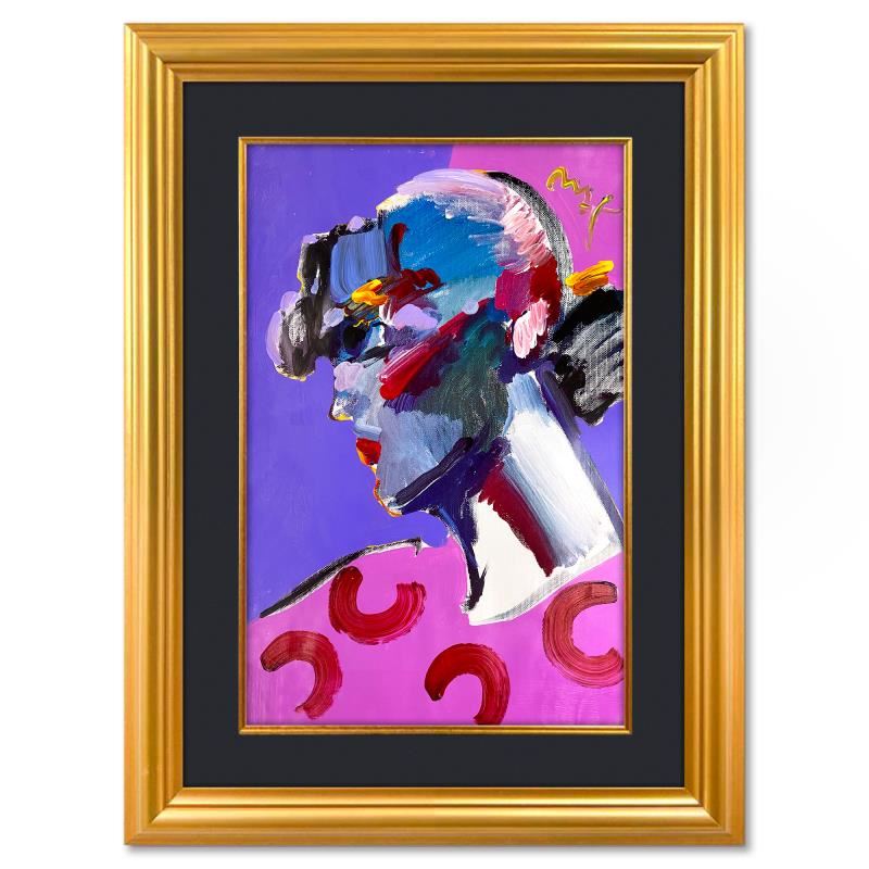 "Palm Beach Lady" is a one-of-a-kind mixed media on paper, hand signed by Peter Max. The piece comes custom framed with a backside cutout to display Peter Max Studio registration number 287298 certifying authenticity. Measures approximately 48" x 36" (frame), 36" x 24" (image).
