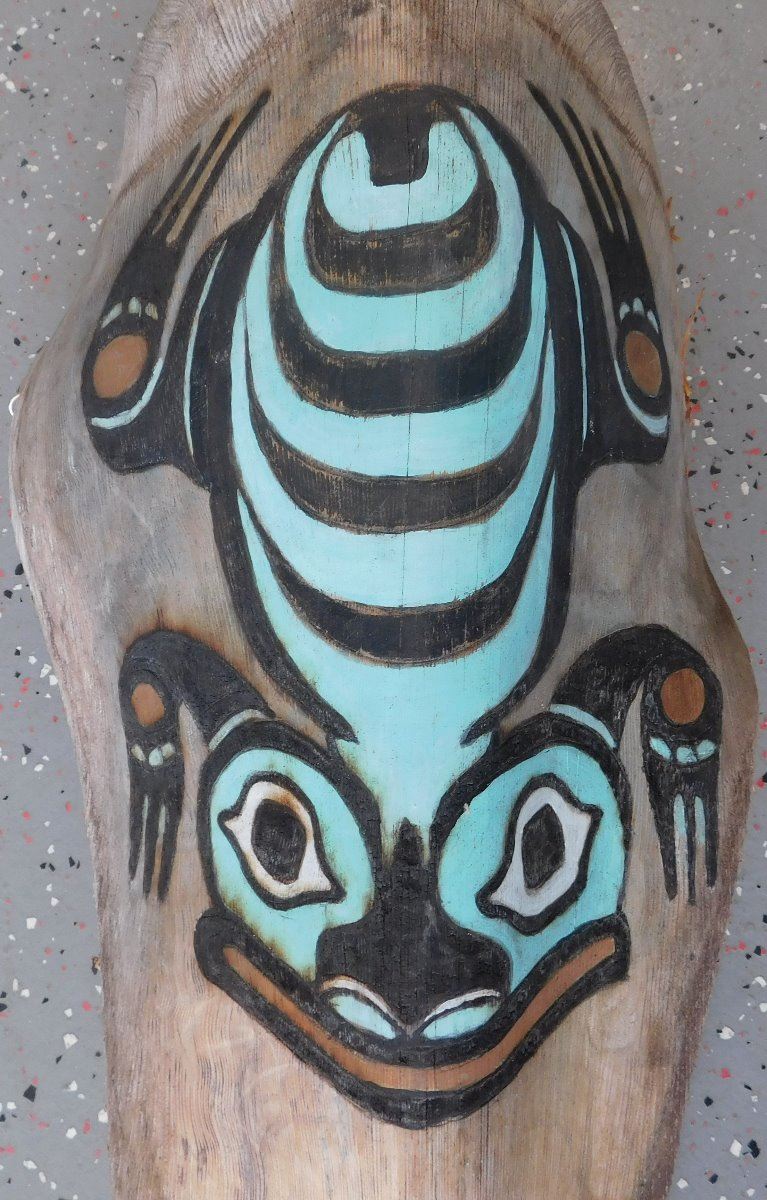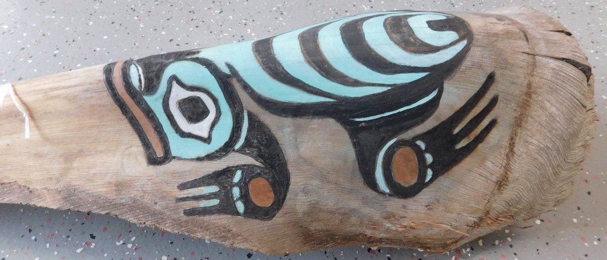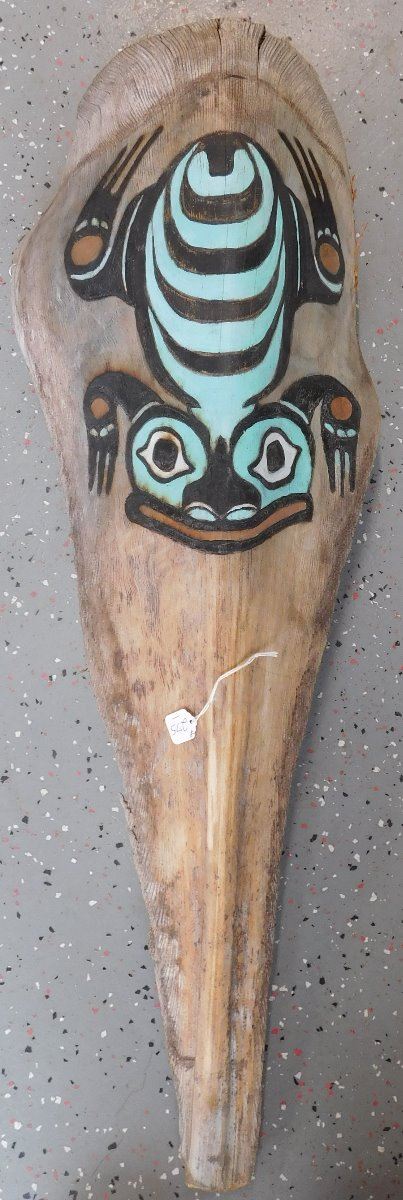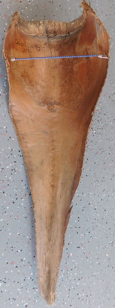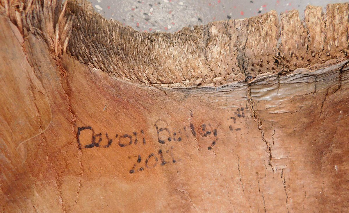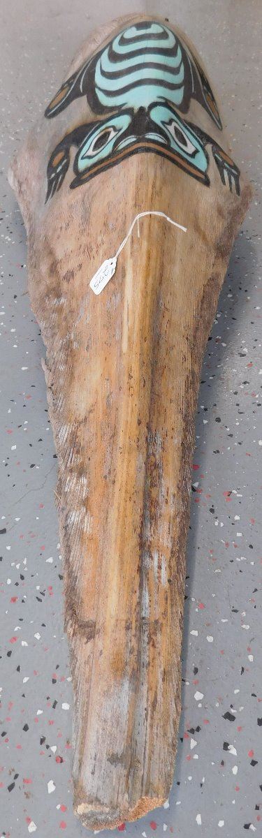 Palm Painting & Carving, 2011. Made of a palm branch, the item measures 33" x 12" x 6.5". D. Bailey/Steve Aho. San Diego County, Calif. Large painting of palm tree scene. Condition: Good, see images. Shipping: $45.00 USA estimate only, due to length.
