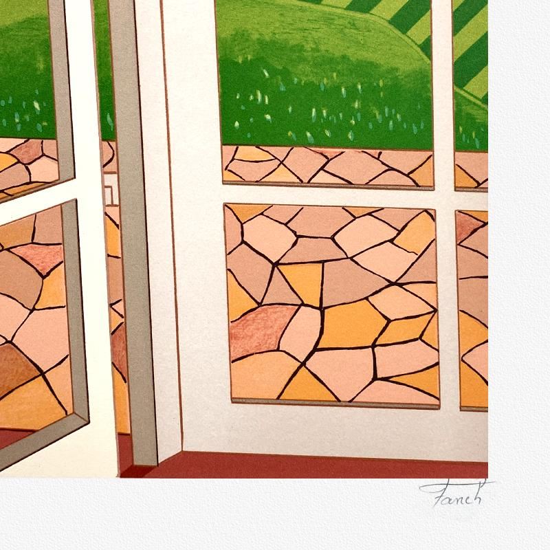 "Palm Springs" is a limited edition lithograph on paper by Fanch PP numbered and hand signed by the artist. Includes Letter of Authenticity. Measures approx. 30.5" x 33" (border) 26" x 28" (image). This proof came from Fanch Ledans personal collection. It may have some slight imperfections in the image and border but its overall condition was inspected and approved by him.