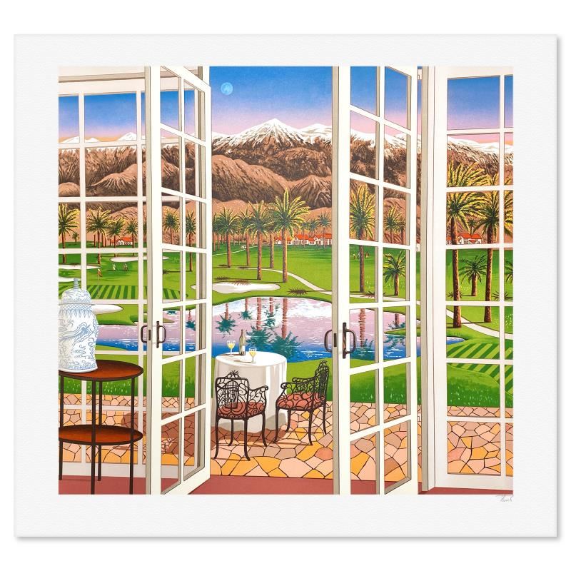 "Palm Springs" is a limited edition lithograph on paper by Fanch, HC numbered I/LX and hand signed by the artist. Includes Letter of Authenticity. Measures approx. 30.5" x 33" (border), 26" x 28" (image). This proof came from Fanch Ledan's personal collection. It may have some slight imperfections in the image and border, but it's overall condition was inspected and approved by him.