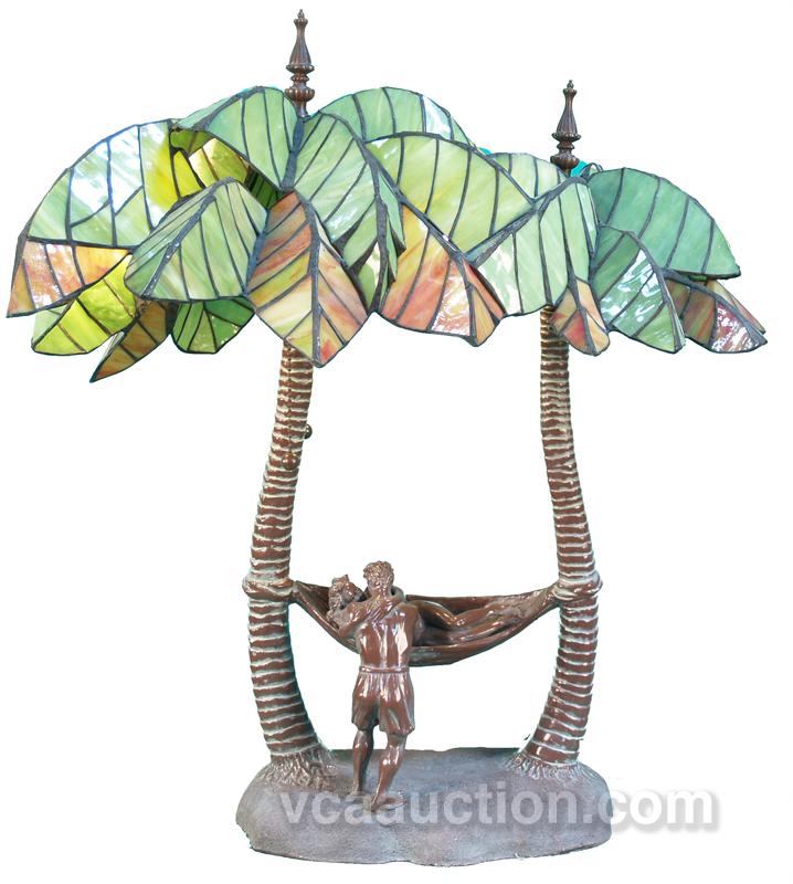 Palm Tree Lamp w/ Woman In Hammock And Man Stading Next To Her - 27" x 24"