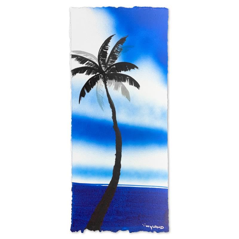"Palm Trees" is an original painting acrylic on deckle edge paper by Wyland. Hand signed by the artist, the piece comes custom framed and with a letter of authenticity. Measures approximately 26.5" x 14.5" (framed), 22.5" x 10.5" (image). This item requires special handling and may have a longer than usual turnaround