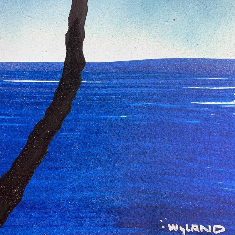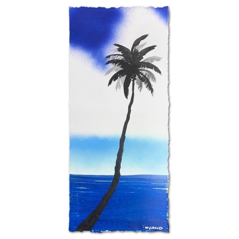 "Palm Trees" is an original painting acrylic on deckle edge paper by Wyland. Hand signed by the artist, the piece comes custom framed and with a letter of authenticity. Measures approximately 26.5" x 14.5" (framed), 22.5" x 10.5" (image). This item requir