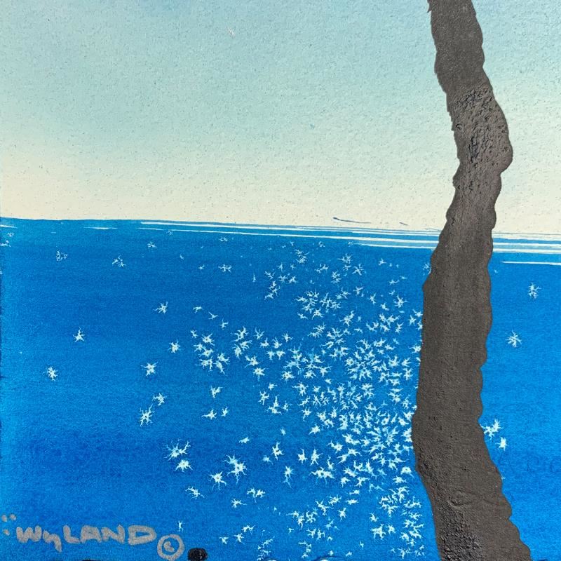 "Palm Trees" is an original painting acrylic on deckle edge paper by Wyland. Hand signed by the artist, the piece comes custom framed and with a letter of authenticity. Measures approximately 26.5" x 14.5" (framed), 22.5" x 10.5" (image). This item requires special handling and may have a longer than usual turnaround