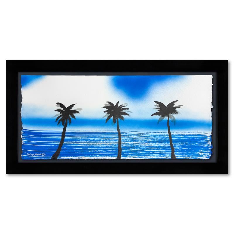 "Palm Trees" is an original painting acrylic on deckle edge paper by Wyland. Hand signed by the artist, the piece comes custom framed and with a letter of authenticity. Measures approximately 14.5" x 26.5" (framed), 10.5" x 22.5" (image). This item requires special handling and may have a longer than usual turnaround