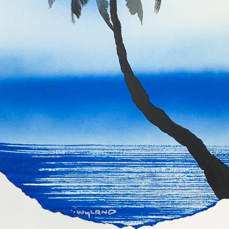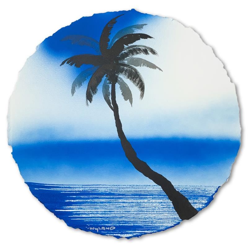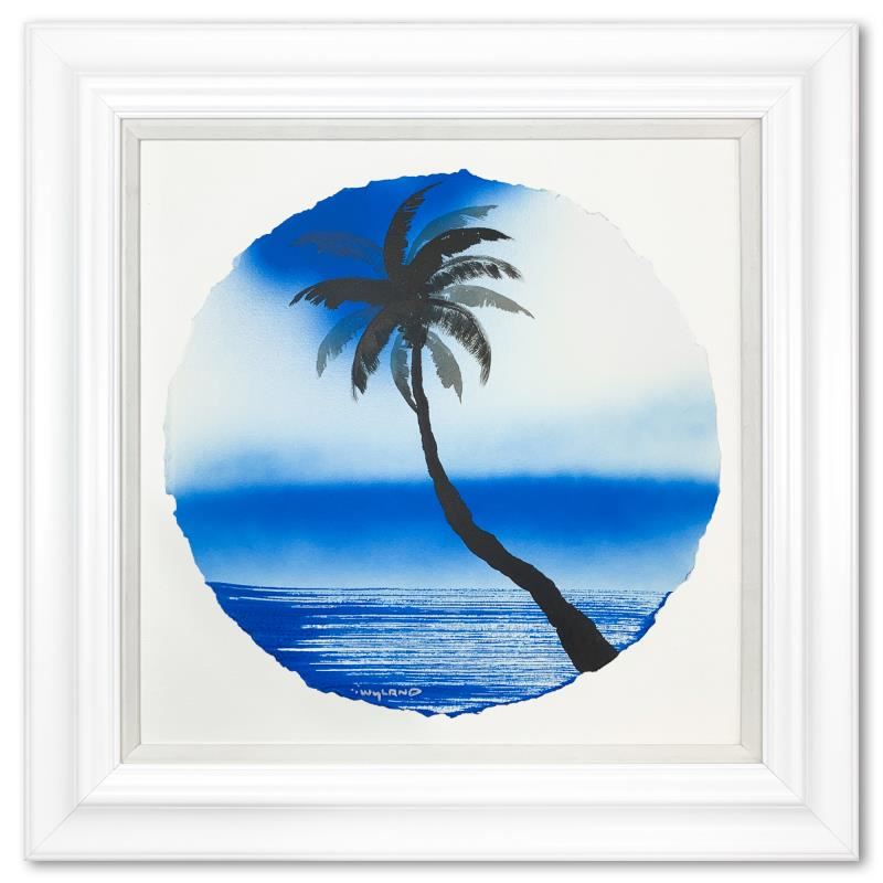 "Palm Trees" is an original painting, watercolor on deckle edge paper by Wyland. Hand signed by the artist, the piece comes custom framed and with a letter of authenticity. Measures approximately 30" x 30" (framed), 19.5" x 19.5" (image). This item requires special handling and may have a longer than usual turnaround.