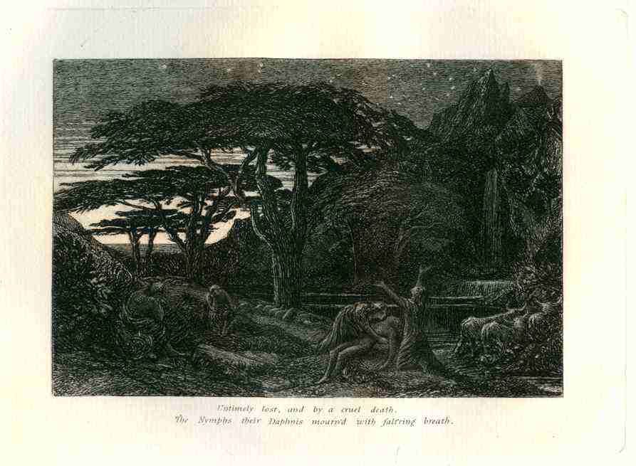 Palmer "The Cypress Grove" Eclogue 5 Original Etching. Samuel Palmer Died In 1881 And Left This Plate In An Advanced State Of Completion; The Final Details Were Finished By His Son. This Fine Impression On Cream Laid Paper Was Published In London In 1883 For "An English Version Of The Eclogues Of Virgil". Plate Size: 5 1/4 X 7 3/8 Inches (132 X 188mm) With Full Original Margins- Professionally Framed & Matted - Comes With Certificate - -