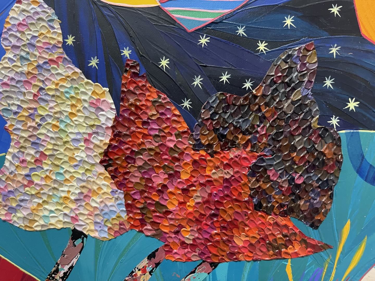 Remarkable original acrylic on 27x27" canvas signed by artist; comes with a certificate of authenticity. This Artwork comes stretched.