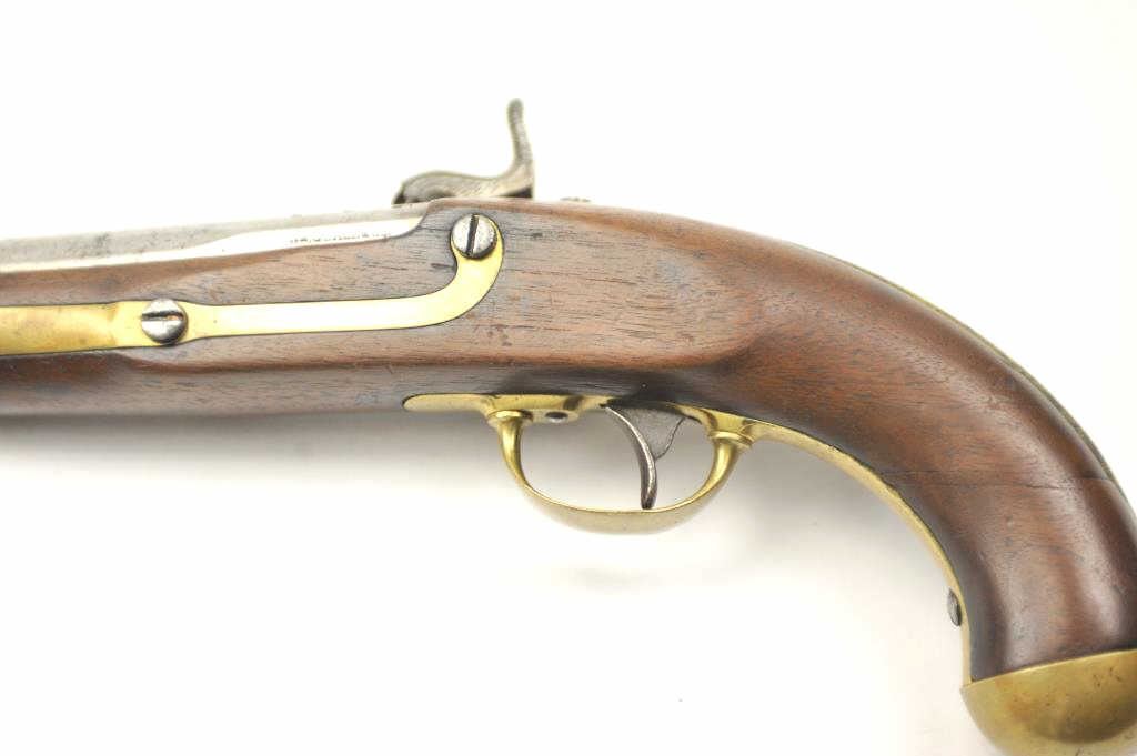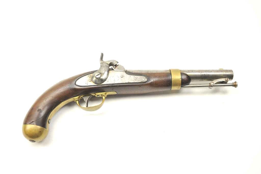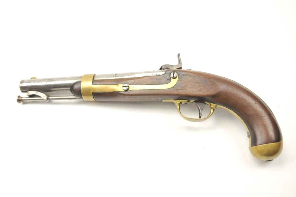 Palmetto Armory marked percussion pistol dated 1853 in good, NRA condition. The pistol shows normal wear, small imperfections and losses. Est.: $1,500-$3,000. (Antique).