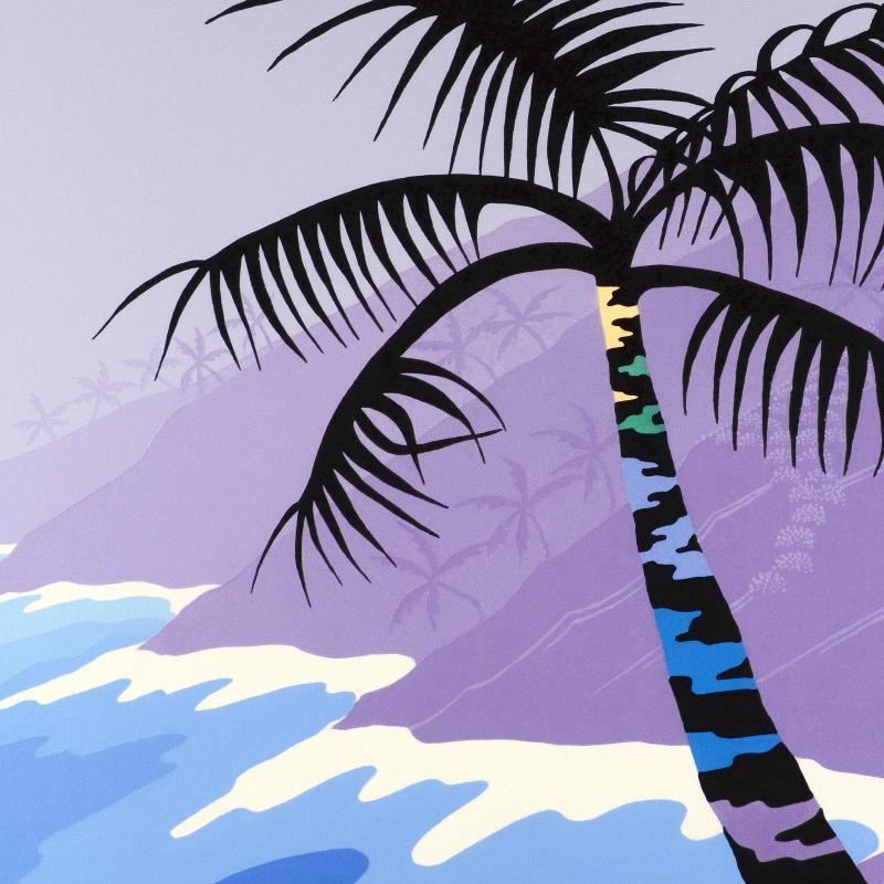 Larissa Holt, a student of distinguished artist Eyvind Earle (1916-2000), uses bold colors and breathtaking scenery to create images of Nature in her own unique style. "Palmistry" is a limited edition giclee on stretched canvas by Holt, numbered and bearing Holt's authorized signature. This piece comes gallery wrapped. Includes Certificate of Authenticity! Measures approx. 27" x 21.5" x 1.5" (image).