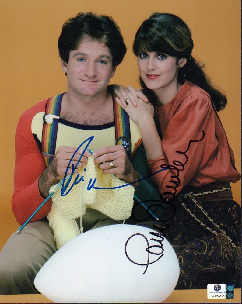 Color 8x10 photo from the series Mork and Mindy signed by Pam Dawber and Robin Williams. The signature has been certified by Global Authentics and issued number GV869265. All items come with a certificate of authenticity good for the life of the piece.