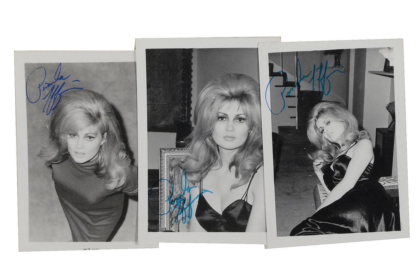 Three different glossy 3.5 x 5 candid photos of the actress, each signed in blue felt tip. One of the photos bears a printed date of October 1967. In fine condition, with a few light creases to a couple of the photos.