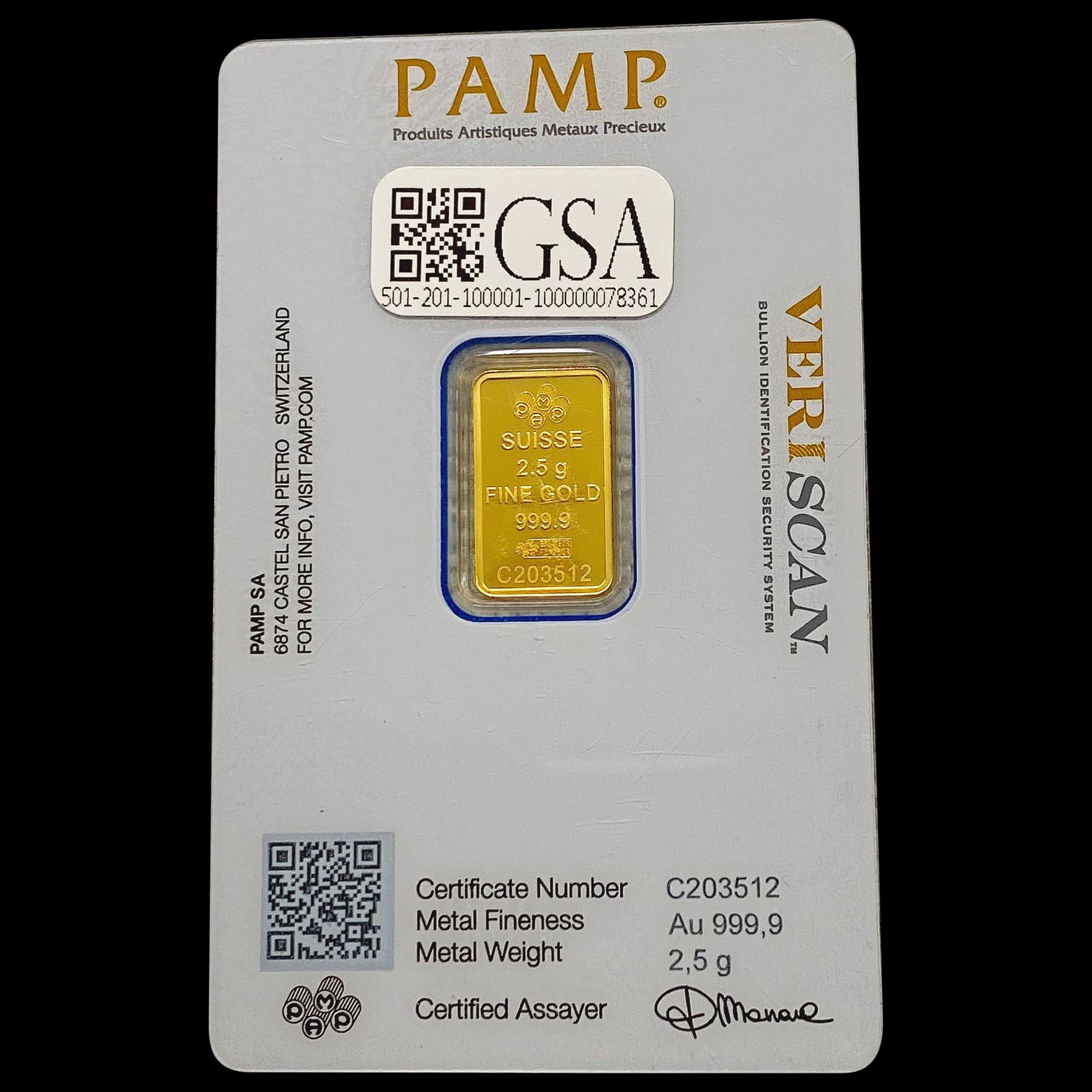 Pamp Suisse 2.5g Gold Bar UNCIRCULATED