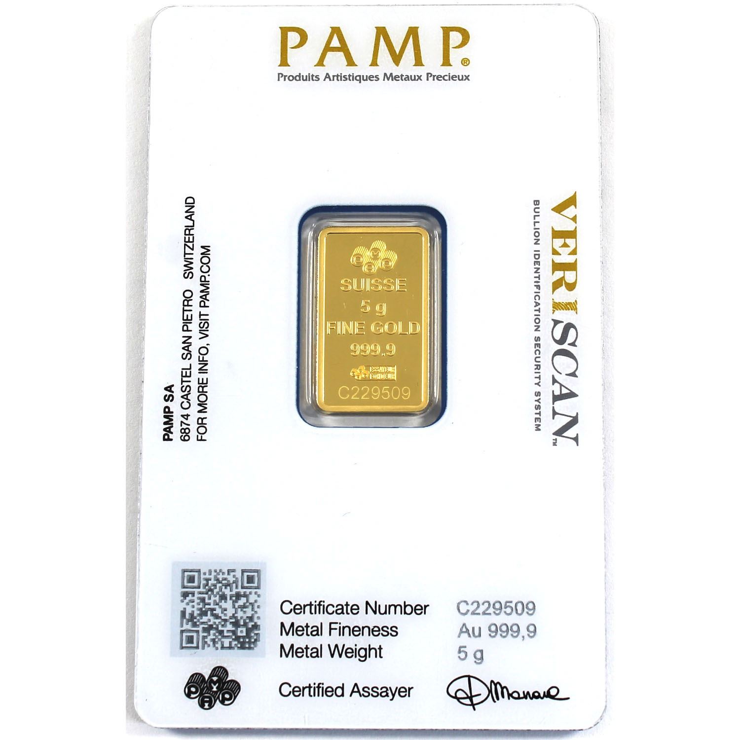 Pamp Suisse 5 Gram .9999 Fine Gold Bar (TAX Exempt).