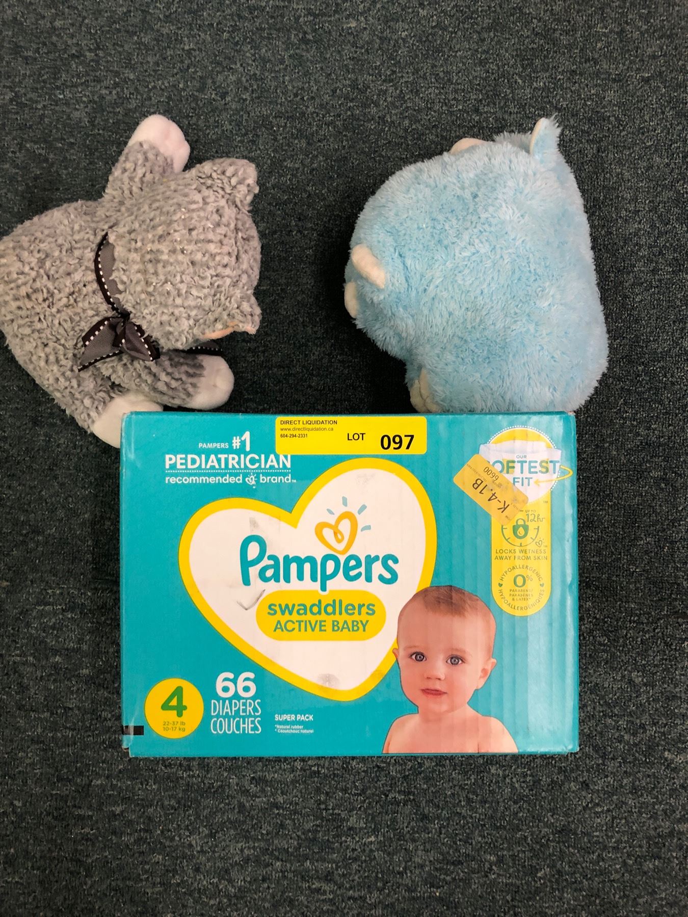 Pampers - Approx. 66 Diapers and set of two baby soft toys