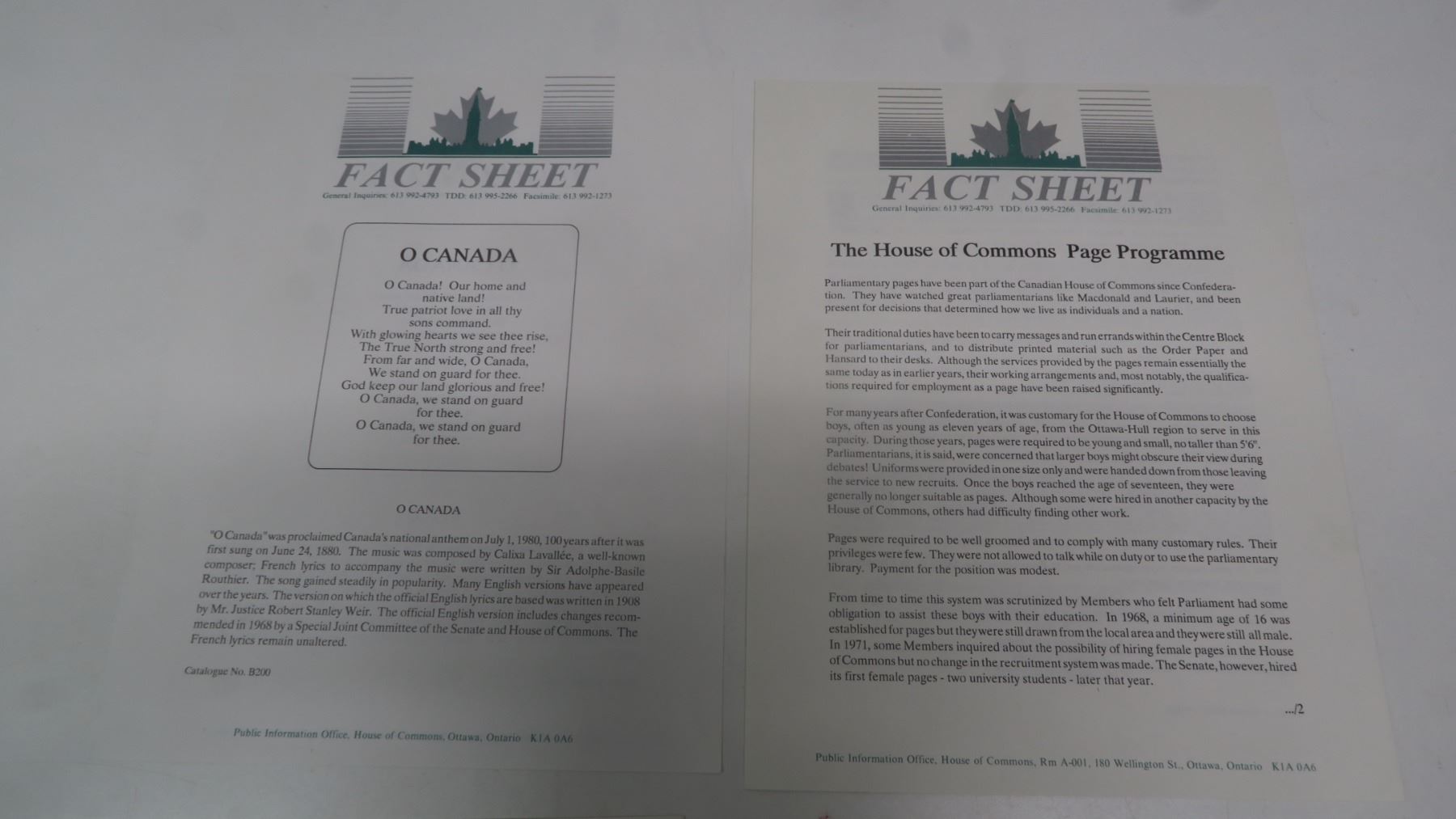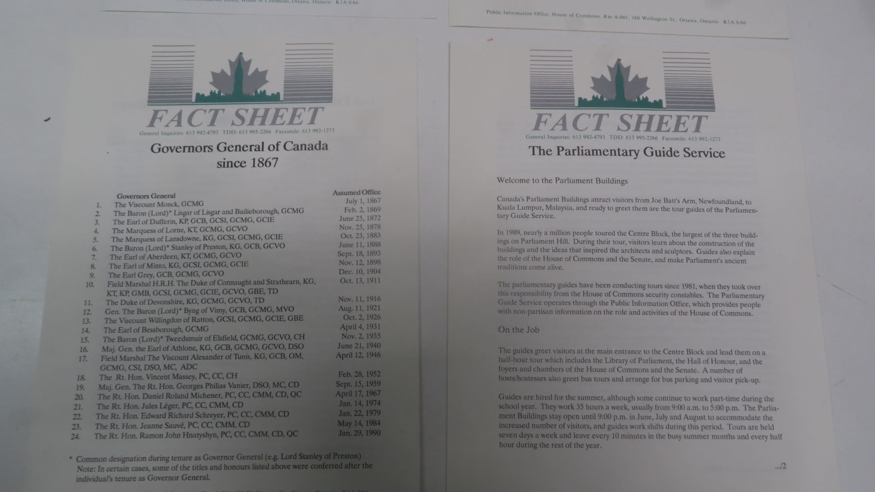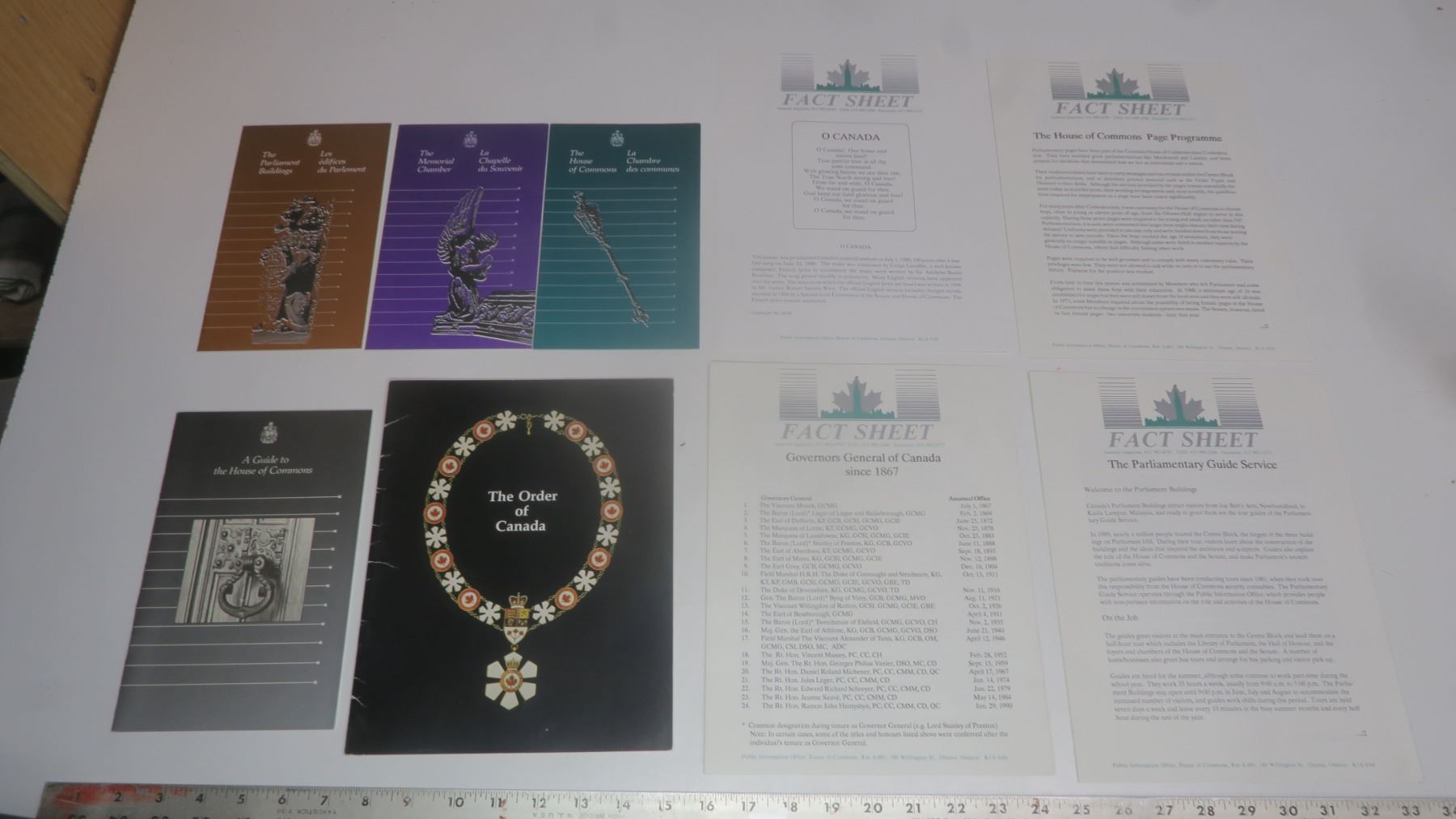 Pamphlets and Fact Sheets on Canadian Parliament Buildings, Order of Canada, Governor Generals, Etc.