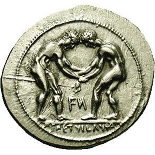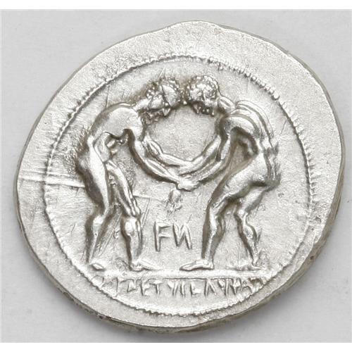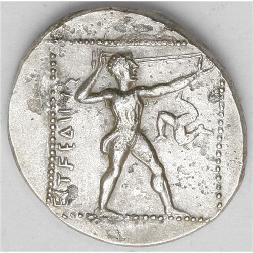 <B>Pamphylia, Aspendos.</B></I> Ca. 380-325 B.C. AR stater (24 mm, 10.83 g). Two wrestlers grappling; FN between / Slinger to right; triskeles in field. Tekin Series D, Group 10; SNG BN 96. Good VF, minor pitting on reverse.