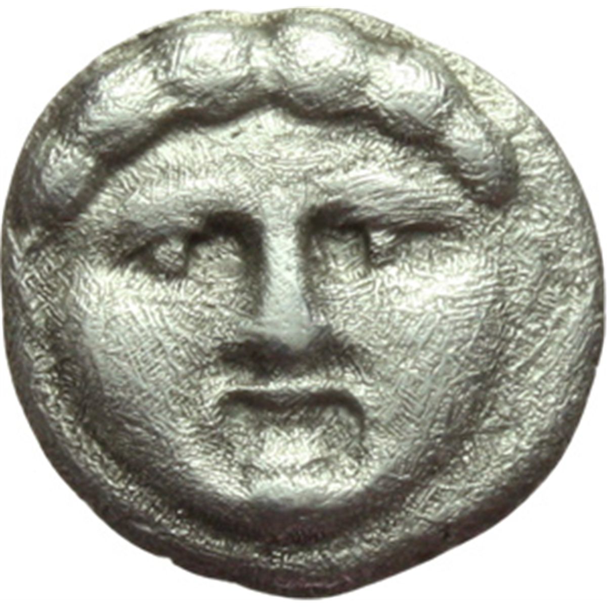 Mondo Greco. Asia Greca. Pamphylia, Aspendos. Obolo, 420-360 a.C. D/ Testa di Gorgone di fronte. R/ Testa di Athena a destra. SNG Paris 32. AG. g. 0.90 mm. 9.00 R.