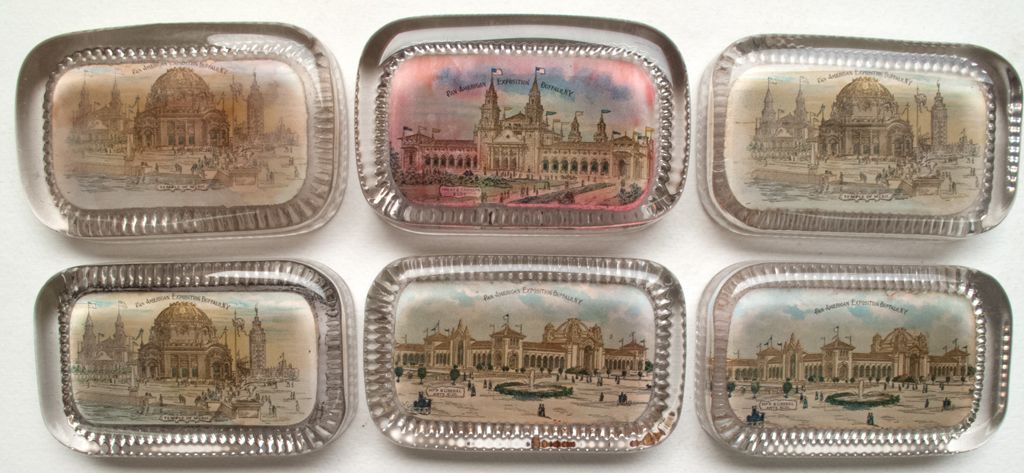 6 glass paper Weights from the Pan American Exposition in Buffalo, New York. Pictures depict various buildings at the exposition.City: BuffaloCounty: State: NY