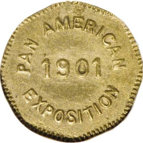 <B>Pan-American Exposition Gold Octagonal Token MS64 NGC.</B></I> Gold, 11 mm, 0.41 gm. Issued as a souvenir of the 1901 Pan-American Exposition held in Buffalo, New York. This is one the better of the fractional gold charms and this might be the highest graded. <BR> <BR><BR><b>Shipping:</b> Coins & Currency (<a target="_blank" href="http://www.heritageauctions.com/common/shipping.php">view shipping information</a>)