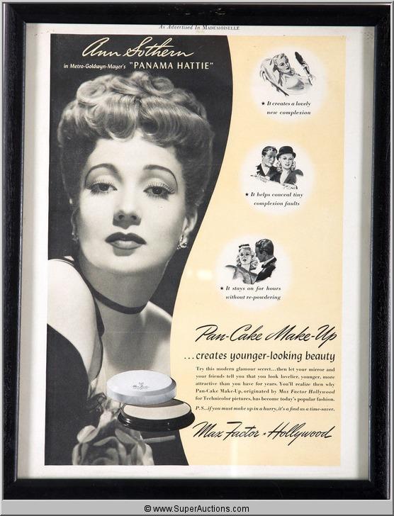 Framed Pan-Cake Make-Up Advertisement 1941 Featuring Ann Southern from the pages of Mademoiselle from the Max Factor Collection {10" L x 12" H}
