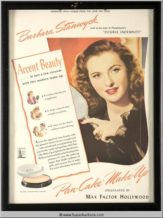 Pan-Cake Make-Up Advertisement 1944 Featuring Barbara Stanwyck {Max Factor Collection}