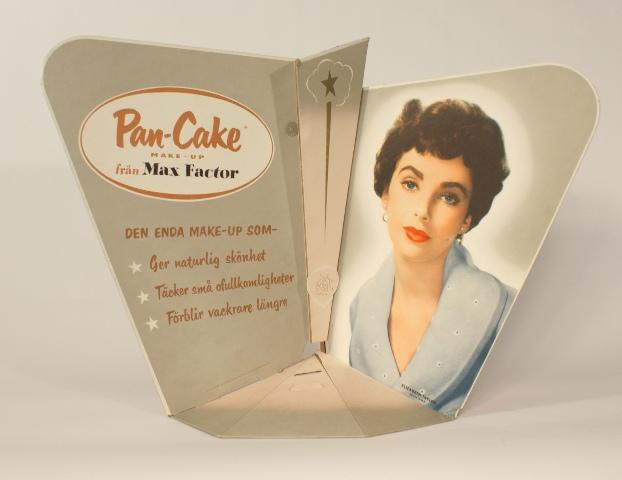 From the Max Factor Collection / Pan-Cake Make-Up Standing Cardboard Advertisement Featuring Elizabeth Taylor M.G.M. Star / {15" H x 22" W}