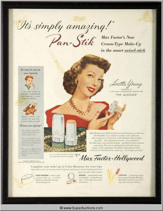 Pan-Stik Make-Up Advertisement 1949 Featuring Loretta Young {Max Factor Collection}