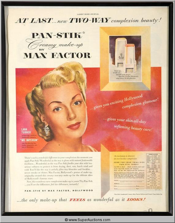Pan-Stik Make-Up Advertisement 1951 Featuring Lana Turner {Max Factor Collection}