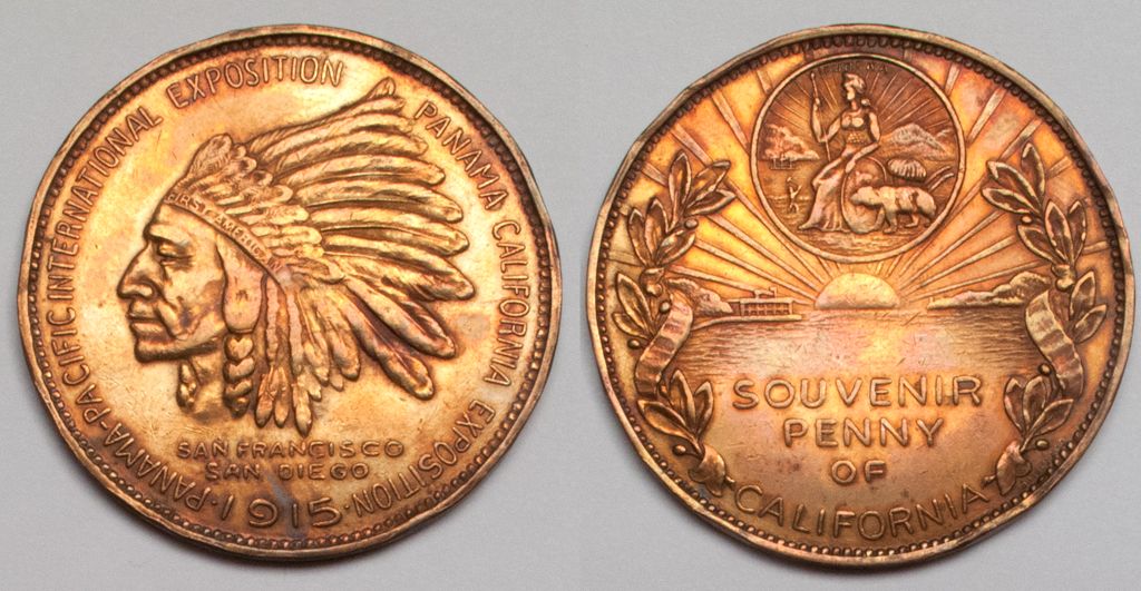 1915 Panama Pacific International Exposition in San Francisco, California. Reverse says souvenir penny of California. Au, cleaned!City: San FranciscoCounty: State: CADate: