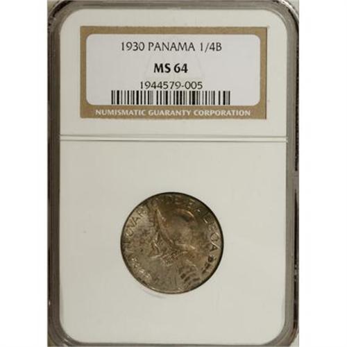 <B>Republic. Silver 1/4 Balboa 1930,</B></I> KM-11.1, MS64 NGC, beautiful toning.<BR><BR><b>Shipping:</b> Coins & Currency (<a target="_blank" href="http://www.heritageauctions.com/common/shipping.php">view shipping information</a>)